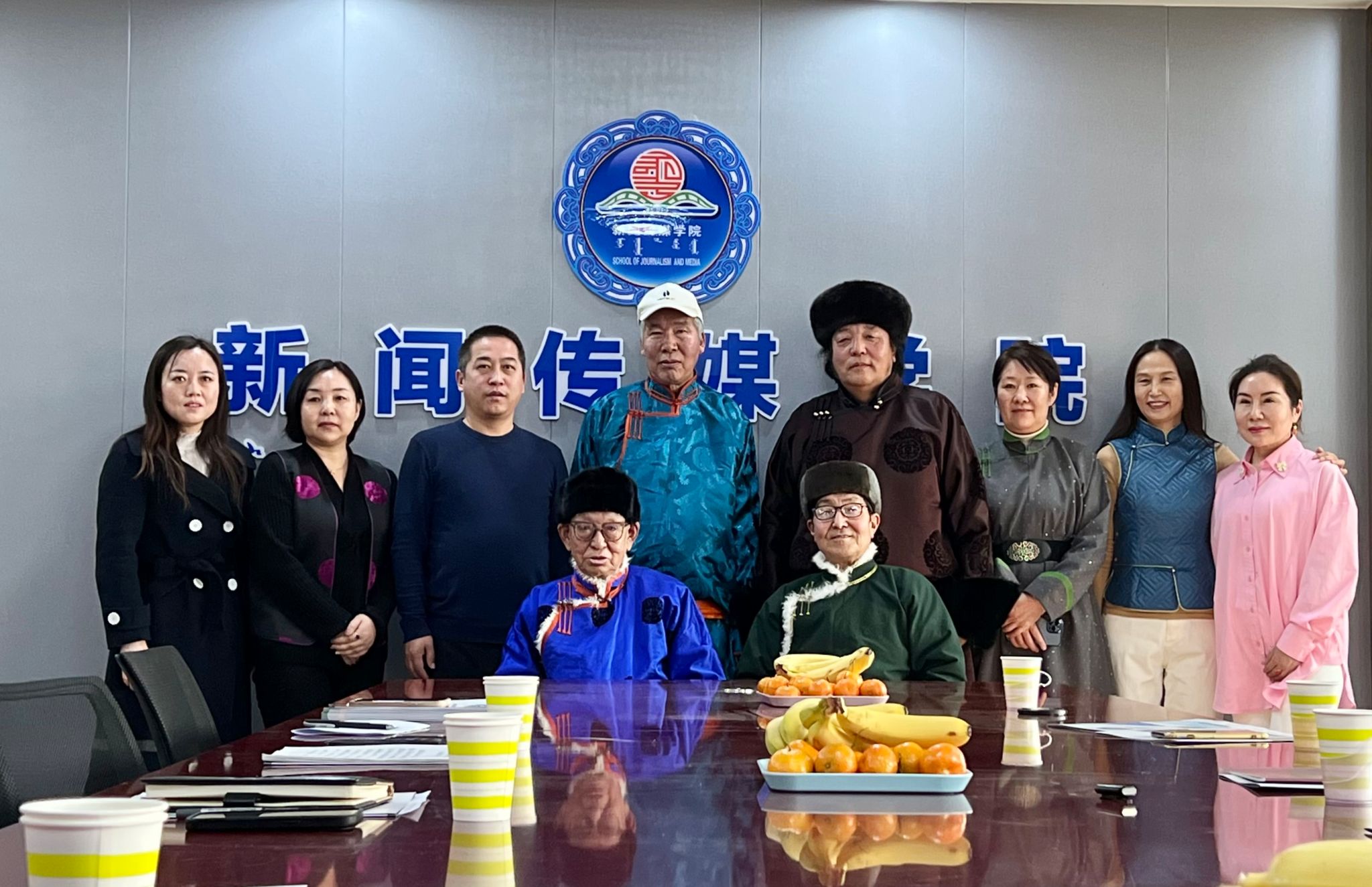12月26日,新闻传媒学院荣休教师巴拉吉、巴图那顺携90级和96级播音班校友来校,向学院赠予纪念礼物并开展座谈交流,学院领导班子及播音与主持艺术教研室教师参与座谈。