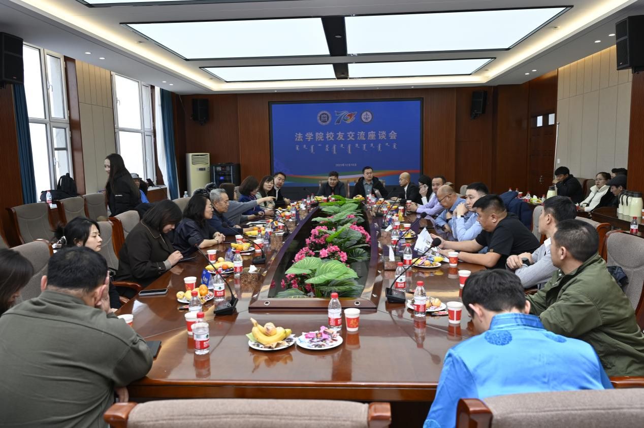 座谈会由乌兰其其格主持。胡春香首先代表学院对校友们的归来表示热烈欢迎,对校友们长期以来对母校的关心和支持表达了衷心感谢,她简要回顾了学院的发展历程,介绍了学校以及学院在学科建设与科研成果、人才培养与招生就业、办学规模扩大和办学条件改善等方面取得的成绩,在广大校友始终秉持“尚法、明德、勤学、笃行”的院训精神,立足岗位,用自己的青春、奋斗和成就,为社会做出了贡献,也为母校赢得了良好的社会声誉,母校为校友们取得的成绩感到骄傲自豪。随后,魏庭欢作为退休教师代表对校友的到来表示热烈的欢迎,并为校友的事业发展回馈母校的情怀表示真诚的谢意,把最诚挚的祝福送给各级校友。接着,各位校友代表进行了交流,1999级法学班的毕业生卓资县县委常委、副县长云升对学院和曾经的任教教师表示由衷的感谢,并简要介绍了自己工作履历、经验和对学院未来的发展表示真切的期望。2003级法学2班校友代表那木拉律师简要回顾了法学院当年发展状况,对学校目前蓬勃发展由衷感慨,还对学院在校学生分享了学习和工作经验,鼓励他们认真学习,力争为社会做贡献。最后乌兰其其格表示,校友是母校发展的见证者,也是母校发展的推动者,是学校建设发展最可依靠的力量和最宝贵的资源,近年来学校高度重视校友联络工作,牵挂校友发展,将以本次座谈会为契机,逐步推进各项合作,进一步为校友搭建平台,尽心尽力做好校友服务工作,并真切地对校友表示欢迎校友们常回家看看。