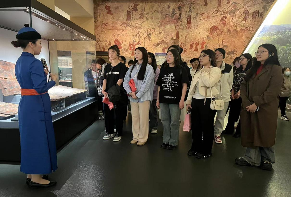 活动中,参观了内蒙古博物院《北疆印迹——中华文明突出特性展》,展览聚焦黄河流域、西辽河流域、长城沿线的历史文化遗存,用北疆大地上的丰富的文物印迹,串联起中华文明起源、形成、发展的历史脉络,多角度阐释了中华文明五大突出特性,实证了北疆文化是中华文明的重要组成,展现了中华文明多元一体、连绵不绝、兼容并蓄的发展历程。内蒙古博物院讲解员结合展览,对语言表达、发音技巧、讲解礼仪和实践操作等内容进行现场指导,分享了推广国通语的工作经验,鼓励师生成为推广普通话的文明使者、铸牢中华民族共同体意识的“播种者”和推动者。