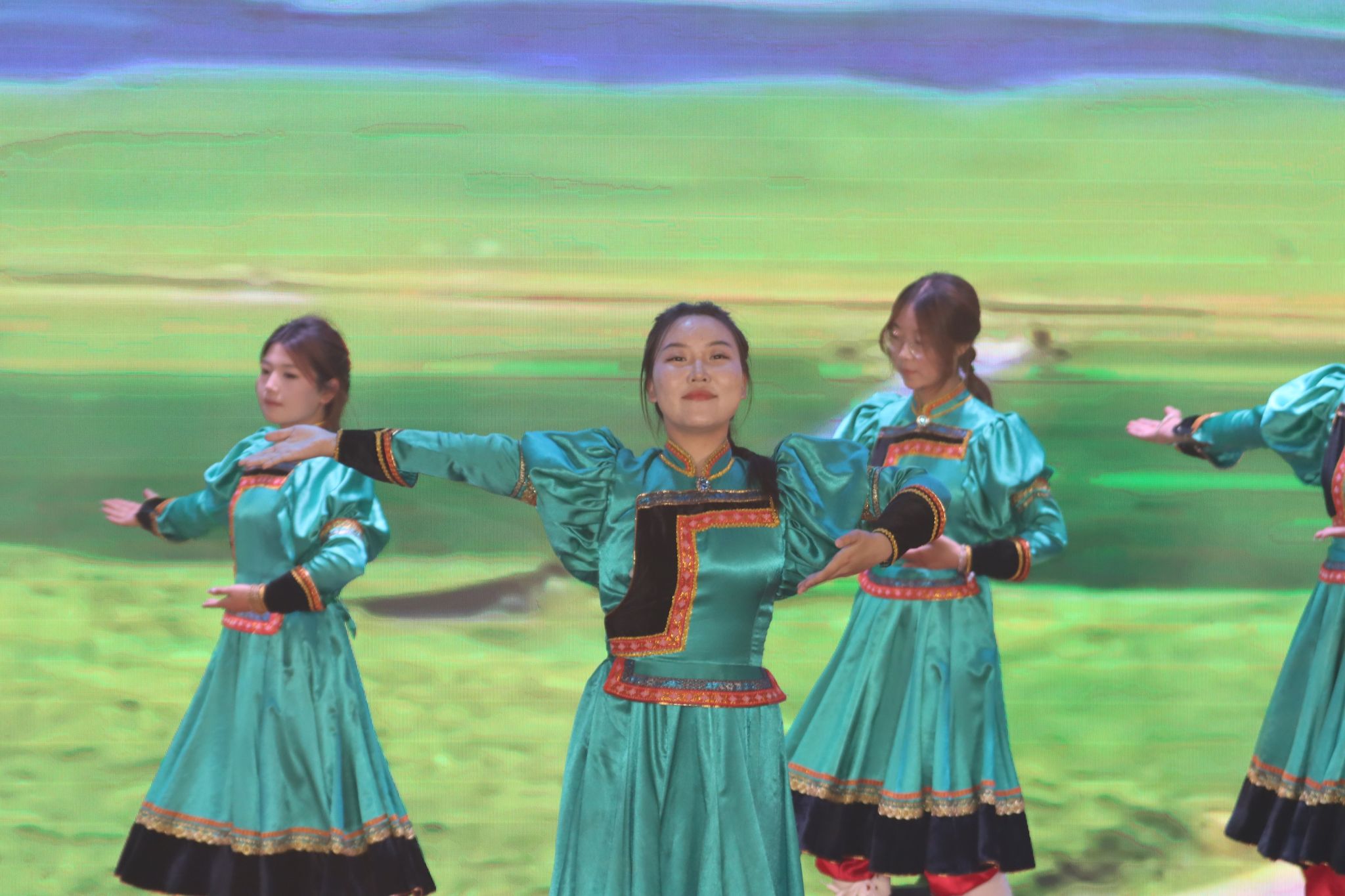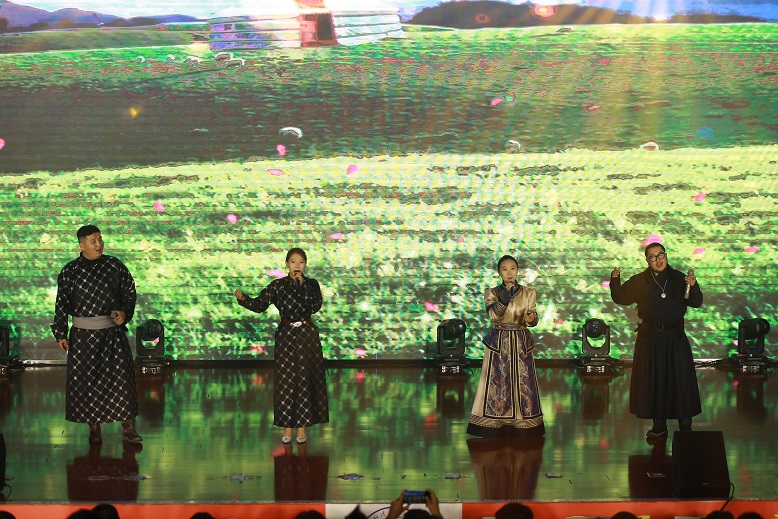 晚会在精彩的马头琴合奏《万马奔腾》中拉开序幕,随后的民族舞、唱跳、朗诵、吉他弹奏、爵士舞、蒙古袍模特走秀等表演也燃爆全场。晚会以群舞《相亲相爱一家人》温馨收尾。