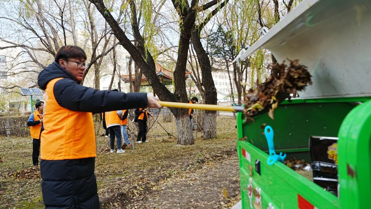 活动中,劳动教育课程班609名青年学子们热情满满,分工有序。在任课教师和管理人员的指导下,他们手持各类清洁工具,迅速投入到校园落叶清扫工作中。展现出了青年学子们的团队协作精神和热爱劳动精神。