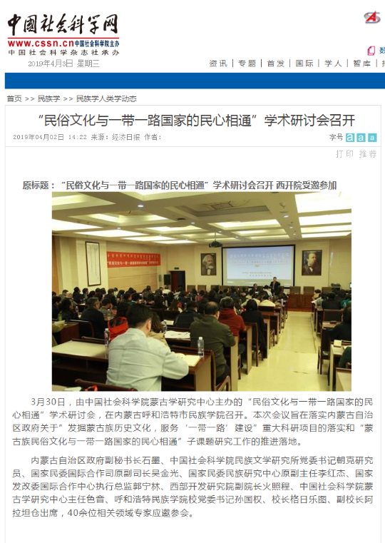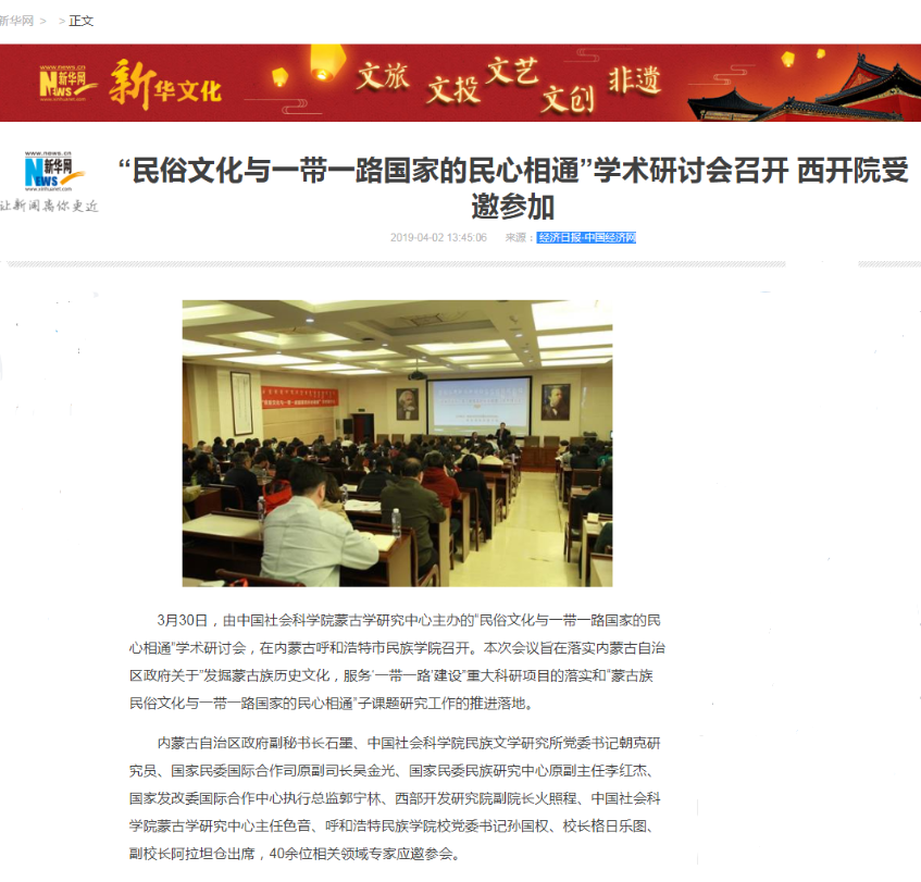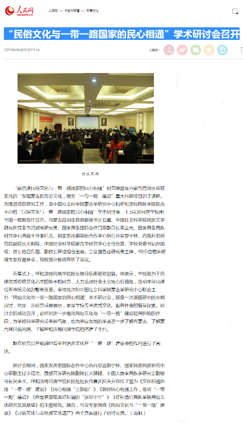 3月30日,“民俗文化与一带一路国家的民心相通”学术研讨会在鸭脖召开。经宣传部积极与媒体取得联系,人民网、中国新闻网、新华网、《民族画报》、中国社会科学网、内蒙古蒙古语卫视、内蒙古旅游报微信公众号等媒体进行了报道,取得了社会各界的广泛好评和关注。