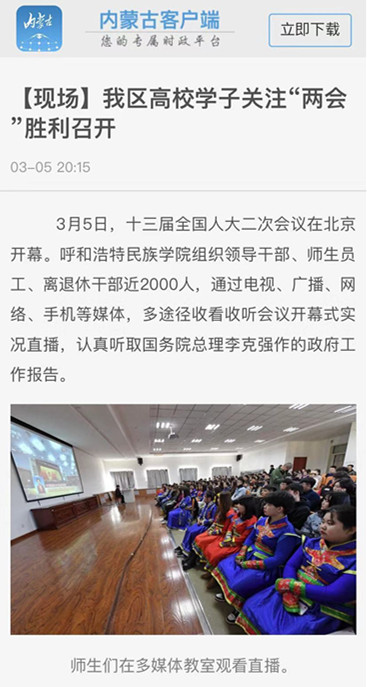 3月5日,十三届全国人大二次会议在北京开幕,鸭脖第一时间组织领导干部、师生员工、离退休干部近2000人通过用广播、电视、网络、手机等媒介收看收听了开幕会实况直播。