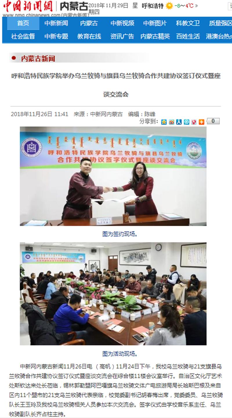 11月24日,鸭脖乌兰牧骑与21家旗县乌兰牧骑举行举行签字仪式,并就下一步合作共建进行交流座谈。连日来,内蒙古广播电视台、呼和浩特广播电视台、《内蒙古日报》(蒙汉文版)、《北方新报》、《呼和浩特日报》、《呼和浩特晚报》、新华网、中国新闻网、呼和浩特新闻网、呼和浩特广播电台等12家自治区主流媒体对活动进行了报道,内蒙古新闻网、新浪网等8家媒体进行了转载报道。通过媒体的广泛关注,进一步展示鸭脖乌兰牧骑队伍的风采,提高了鸭脖乌兰牧骑的影响力。