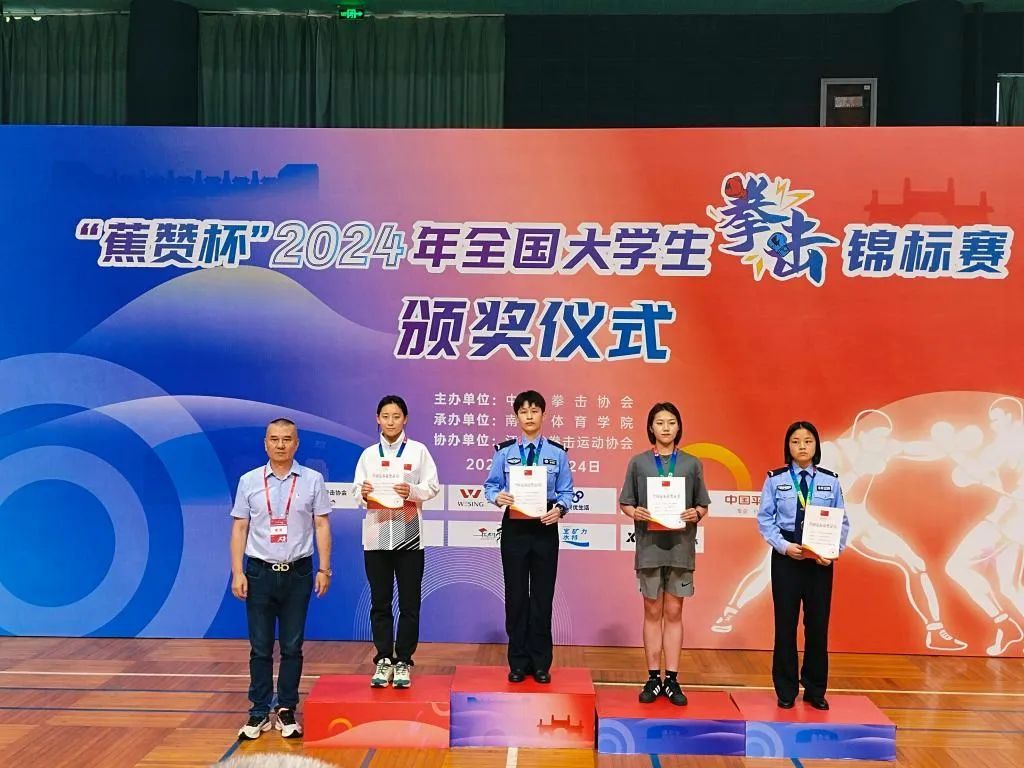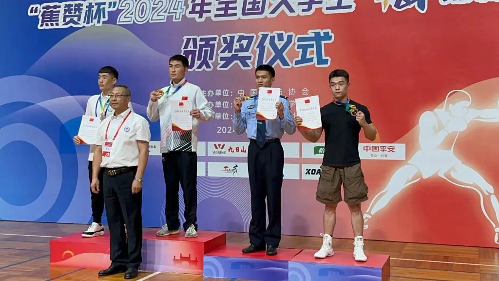 内蒙古财经大学拳击运动员包伟民获得男子57-63.5kg冠军