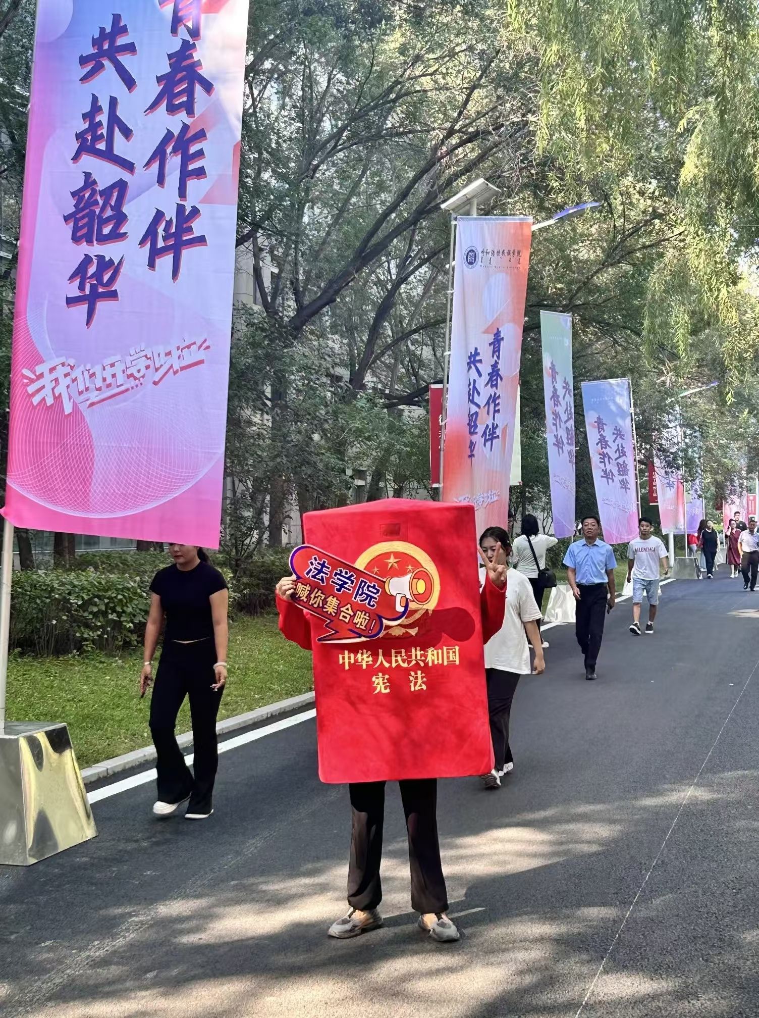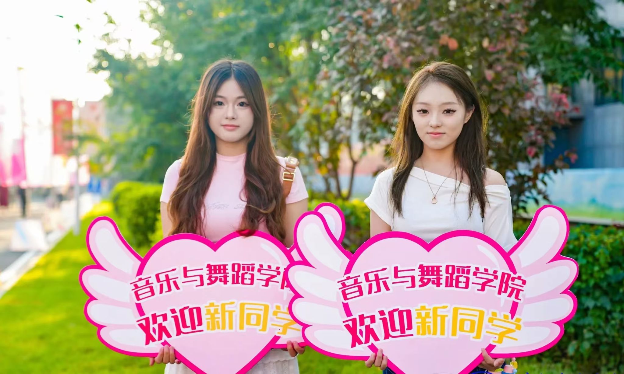 彩色的拱门热情洋溢,高高举起的指示牌向新同学展示……