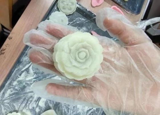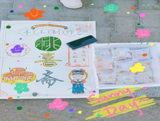 同学们在做好疫情防护的基础上,在老师的指导与帮助下提前准备了一系列制作冰皮糕点的材料和工具,并且手工绘制了宣传海报。活动过程中,同学们分工明确:预拌粉揉团、准备馅料、糕点加工、分类包装、广泛销售… …活动伊始,同学们首先进行了简单的桌面布置,接着便投入了抓紧制作的环节,以确保原料的质量与口感。