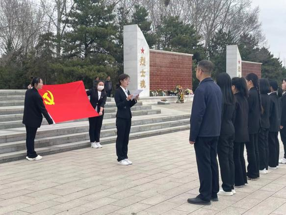 在苏佳玲同志领誓下,党员及预备党员在烈士墓碑前郑重进行入党宣誓,紧握右拳,声音铿锵有力,表达党员同志们矢志不渝听党话、坚定不移跟党走的决心。预备党员代表任亦添同志发言,抒发对革命先烈的无限哀思和崇高敬意。