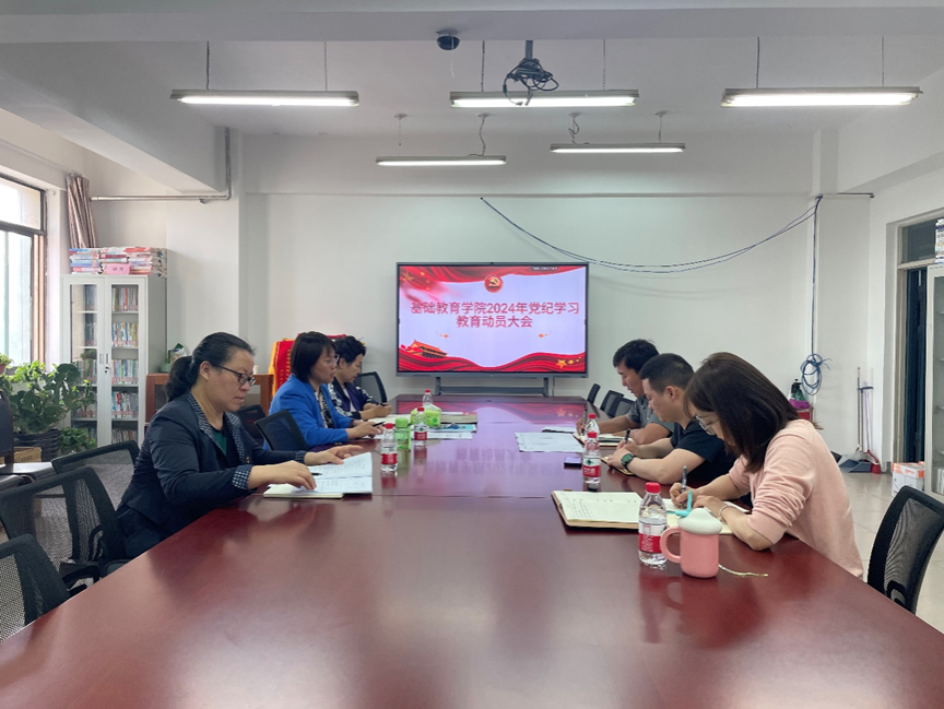 4月18日下午,基础教育学院召开党纪学习教育工作动员大会,传达学习习近平总书记关于党纪学习教育的重要讲话重要指示精神,贯彻落实中共中央办公厅《关于在全党开展党纪学习教育的通知》,部署学院党纪学习教育工作。党总支负责人萨日胡主持会议并领学习近平总书记关于党纪学习教育的系列重要讲话和重要指示。