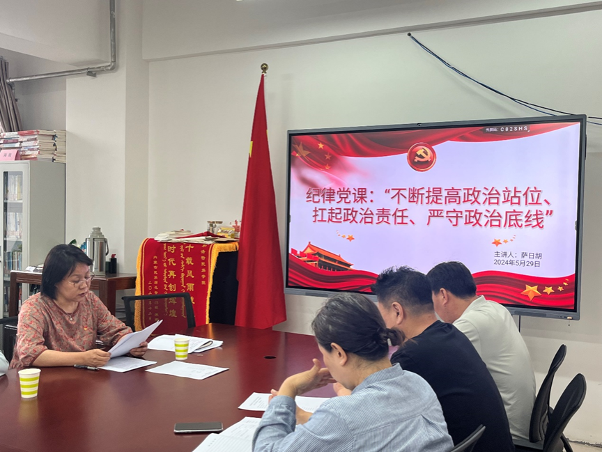会议第一议题萨日胡领学习近平总书记关于党的纪律教育的重要论述,推动党纪学习教育入脑入心走深走实。在纪律党课上,萨日胡从“学纪、知纪、明纪、守纪”四个方面展开,她指出,一学习党纪是党员干部的终身使命,必须坚守绝对忠诚,将其视为生命线;二知党纪是守规之基,必须铭记行为红线,将其作为自我约束的座右铭;三深化对党纪的认识是筑牢规矩意识之基,必须保持清正廉洁的作风,将其作为服务人民的行动指南;四坚守党纪是成就事业之基石,必须秉持清正廉洁,将其作为干事创业的坚强后盾。