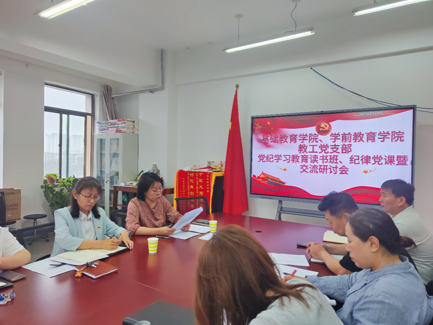 为深入学习贯彻新修订的《中国共产党纪律处分条例》(以下简称《条例》),按照读书班课程安排,5月29日,基础教育学院教工党支部联合学前教育学院教工党支部在都林楼405会议室开展党纪学习教育读书班、纪律党课暨交流研讨会。交流研讨会由基础教育学院党总支负责人萨日胡同志主持。