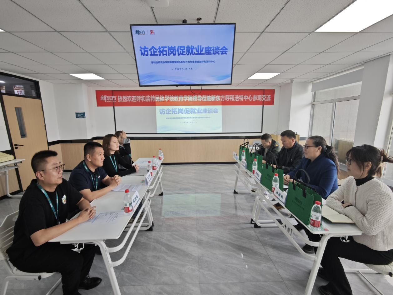 新东方大学事业部呼和浩特中心负责人李彦峰对教育学院一行的到访表示热烈欢迎,并详细介绍了新东方大学事业部的发展历程、核心业务及未来规划。他表示,随着新东方大学事业部呼和浩特中心业务的不断发展壮大,急需一批具备扎实专业功底、热爱教育事业的专业人才加入,推动企业持续向好发展。