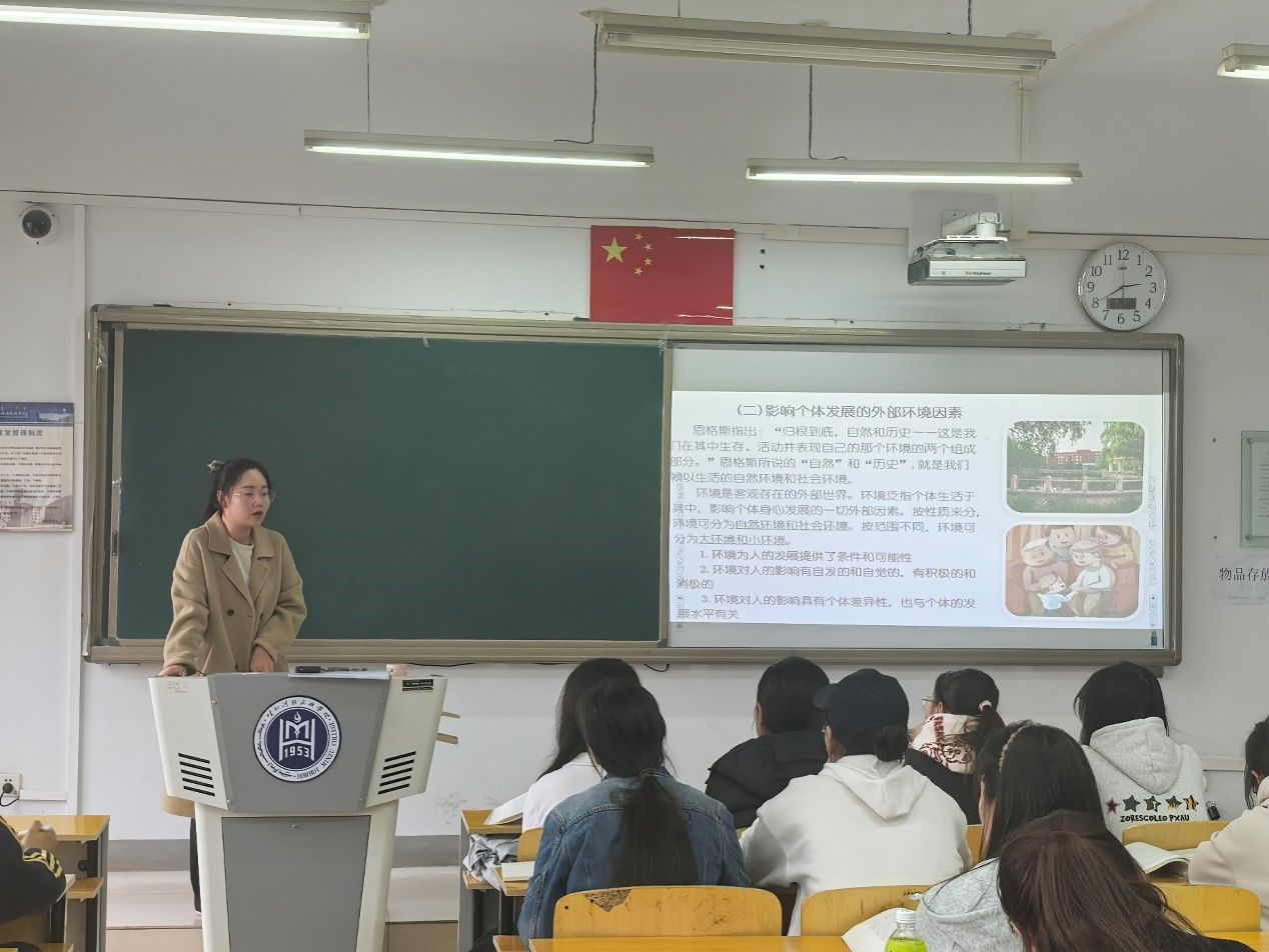 而在余湛老师的课堂上,他则巧妙地运用案例导入法,结合学生日常经验和经历的案例,生动形象地辅助学生理解心理学知识。授课过程中,余老师同样展现出自然流畅的教学姿态和清晰的授课思路。他充分利用试题提高学生的课堂参与度,让学生在互动中深化对知识的理解。授课结束后,督导组成员也进行了细致的评教活动,对余老师的教学成果给予了肯定,并提出了一些改进建议。他们建议余老师打破传统的传授式教学方式,尝试结合短视频和实验的方法进行教学,以提高学生的课堂积极性;在案例讲授时采用学生主体的分析方法,引导学生主动思考;课件设计应注重细节,文字大小和背景颜色应形成鲜明反差,便于学生观看;同时,增加适当的一对一互动环节,以实现更加有效的课堂管理。