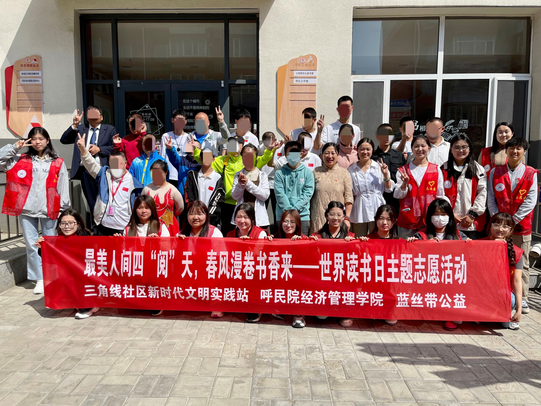 4月23日,是第29个“世界读书日”,为深入学习宣传习近平文化思想,坚持不懈用习近平新时代中国特色社会主义思想凝心铸魂,进一步推动全民阅读进社区工作深入开展,呼和浩特市新城区锡林北路街道三角线社区,经济管理学院学生党支部、团总支,蓝丝带公益,呼和浩特市智力残疾人及亲友协会联合开展最美人间四“阅”天,春风漫卷书香来——世界读书日主题志愿活动。