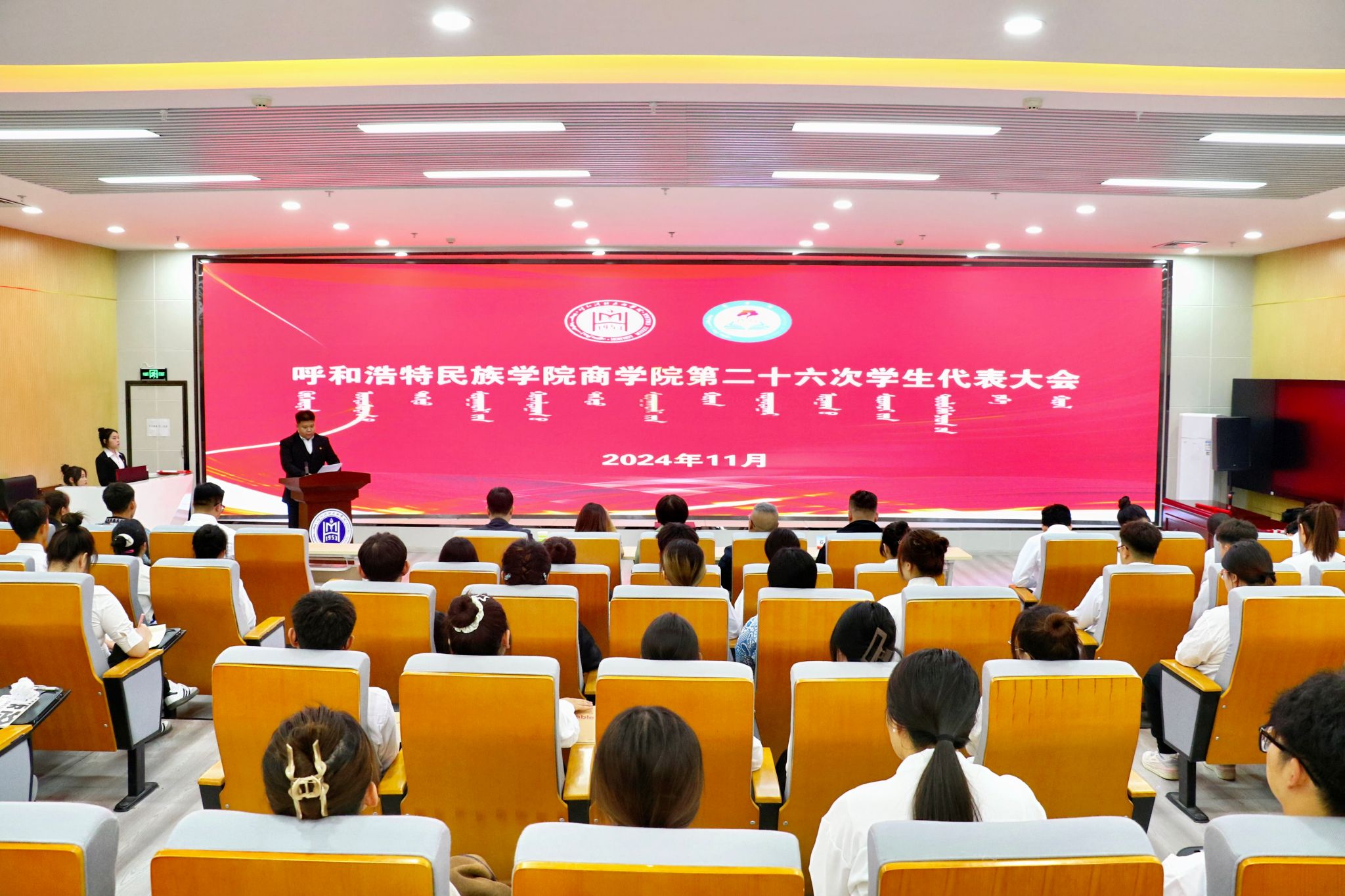 为进一步引领学生积极参加学院事务,提高民主意识,强化学生组织自我教育和自我管理能力,推进学生组织工作平稳有序进行。根据《高校学生代表大会工作规则》和《中华全国学生联合会章程》规定,经商学院团总支决定,并报校团委批准,11月2日下午在商学院铸牢教育馆一楼报告厅召开了第二十六次学生代表大会。学院领导班子,团总支负责人、各班学生代表、学生会代表等100余人参加本次大会。