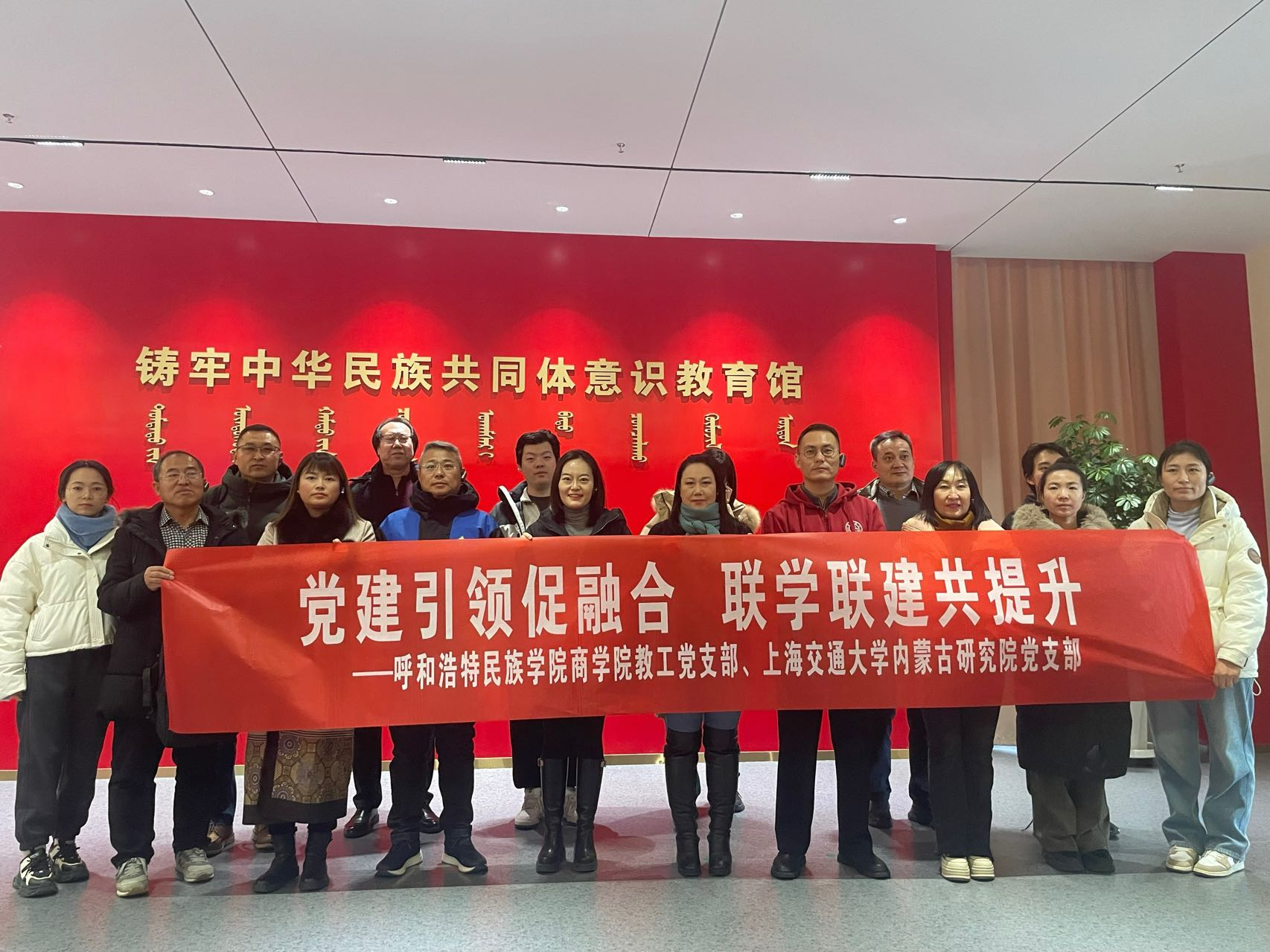 2024年125日(星期四)下午15:00商学院教工党支部携手上海交通大学内蒙古研究院党支部,联合组织并参观了学校铸牢馆,开展了一场别开生面的联学联建活动,实现了党建与业务的深度融合与发展。