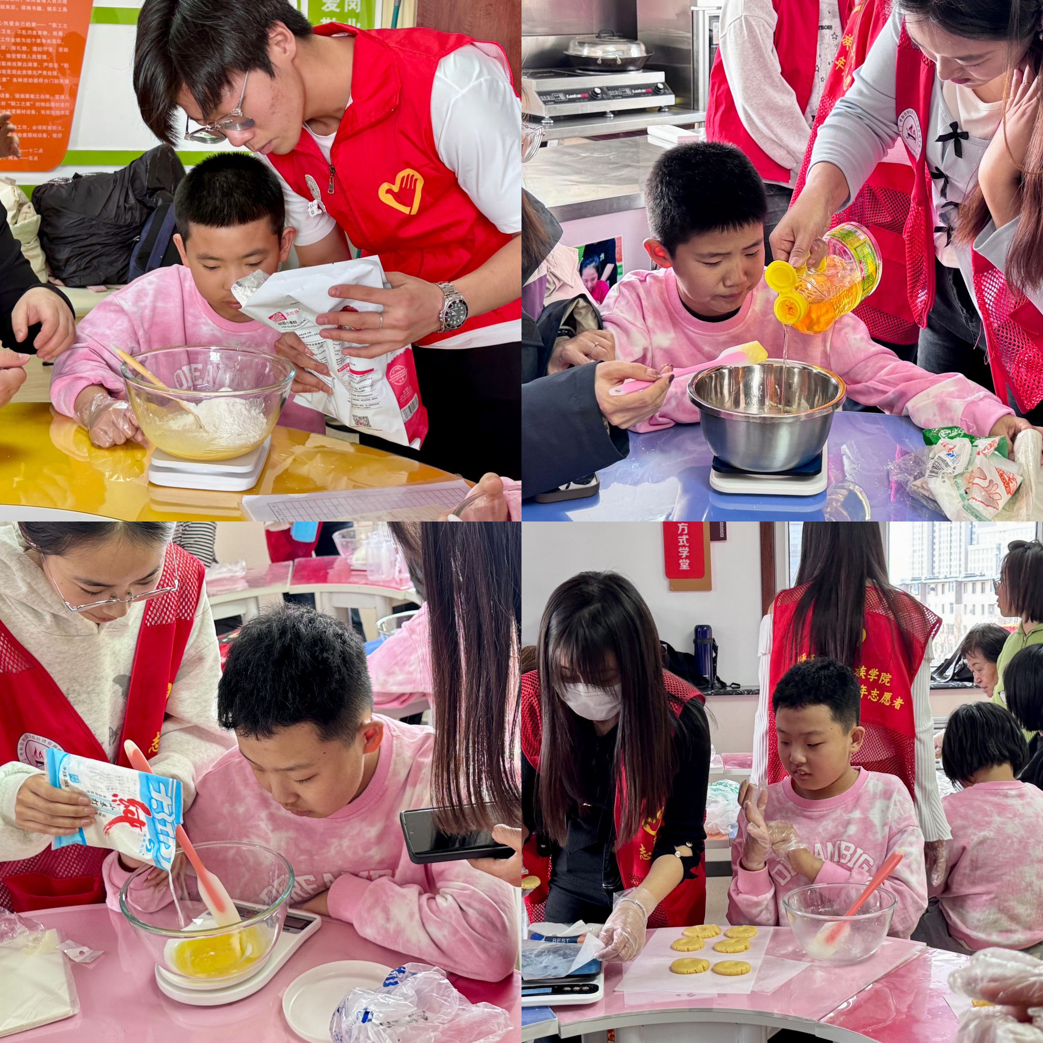 活动现场,青年志愿者以无微不至的耐心和满腔的热情,手把手地指导每一位孩子制作纸杯蛋糕、饼干等美味甜品。揉面、裱花、装饰…… 每一个步骤都充满了乐趣与挑战。随着烤箱门的打开,糕点的香气瞬间弥漫在整个活动场地,甜蜜的气息仿佛在诉说着大家内心的喜悦与满足看到了孩子们的笑容,听到了他们的欢笑声,感受到了他们的快乐通过烘焙的过程孩子们学会了一项新的技能,更重要的是,增强了志愿者与孩子们之间的关系和团结协作的能力随后,大家将精心制作的甜品仔细打包,带回家中送给父母品尝这亲手制作的甜点
