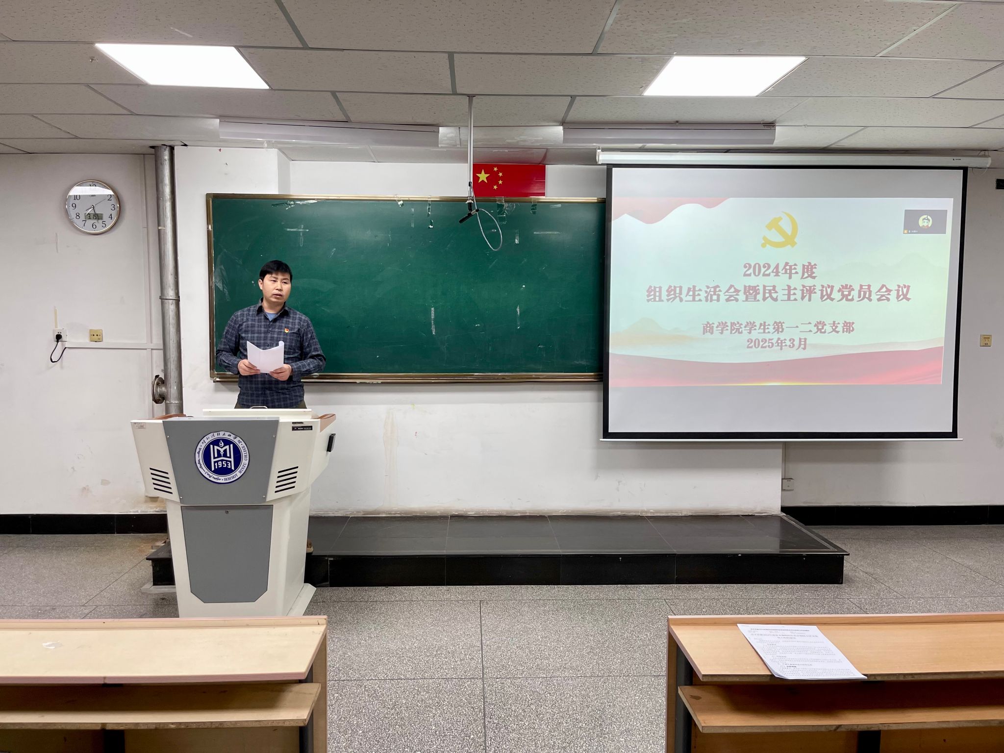 3月19日,商学院学生党支部在尚智楼314教室召开组织生活会及民主评议党员大会。各支部委员和学生党员通过线上线下61名党员参加会议,会议由学生第二党支部书记华国庆主持。
