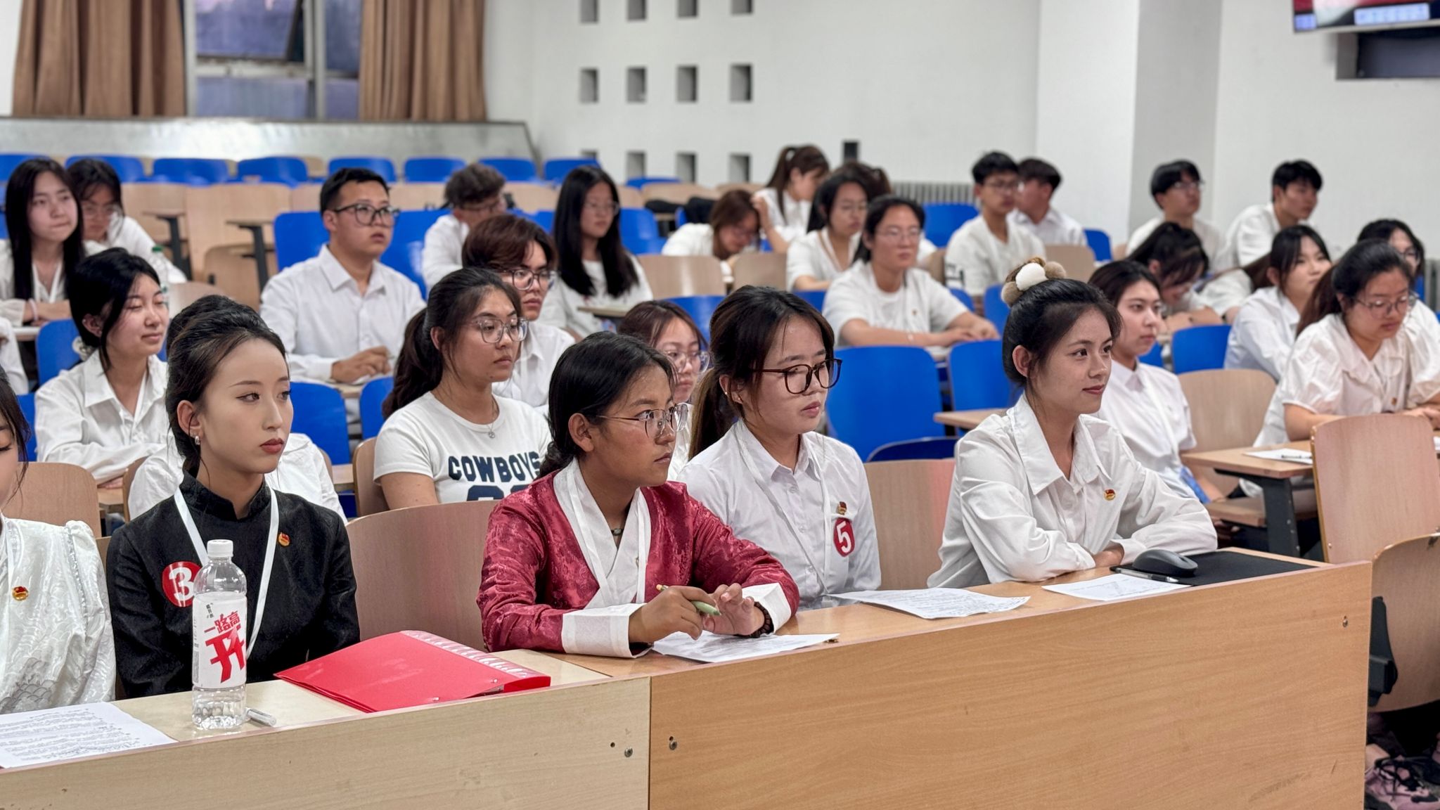 赛场上,6 支青马学员队伍围绕红色传承、中国式现代化、高质量发展等选题,以青春视角阐释党的创新理论,结合专业特色诠释青年使命担当。通过情景演绎、数据分析、故事讲述等形式,将理论知识与实践感悟深度融合,以生动语言追溯红色历史、以鲜活案例聚焦当代发展、以创新表达展望未来蓝图,用青年话语传递信仰力量,充分彰显扎实的理论功底与昂扬的精神风貌。
