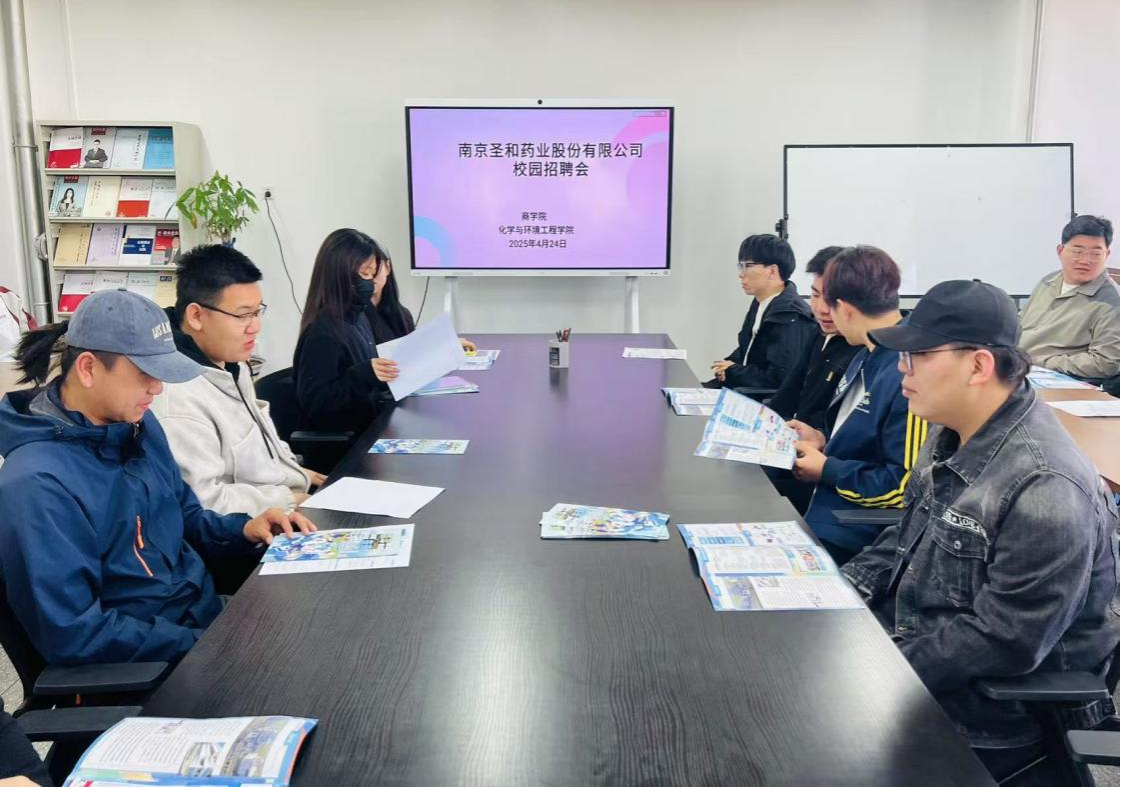 424上午,商学院化学与环境工程学院携手在尚智楼310举办了南京圣和药业股份有限公司校园招聘会。本次招聘会以 学科联动 精准育才 协同就业为主题,吸引了众多毕业生参与,岗位覆盖化工、营销专业,提供就业岗位10。校党委委员、副校长高喜天、商学院领导班子、化学与环境工程学院领导班子、全体辅导员等出席了本次招聘会。