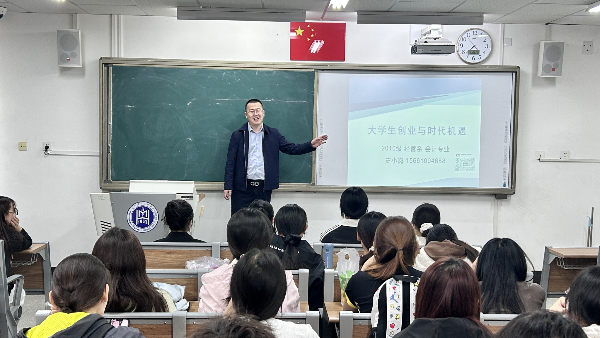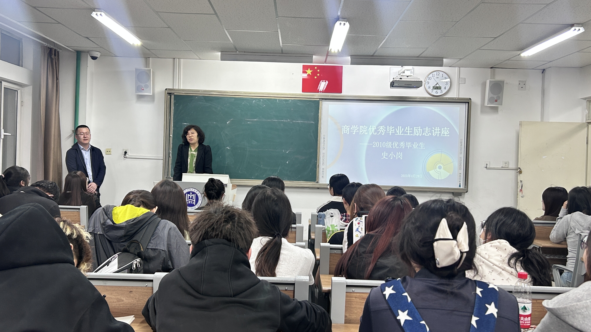 为充分发挥优秀校友的示范引领作用,激发在校学生的奋斗热情,2025年4月28日晚YABO鸭脖商学院党总支特邀2010级优秀毕业生史小岗重返校园,在尚智楼206开展励志讲座。学院师生代表60余人齐聚一堂,聆听励志故事,汲取奋进力量。