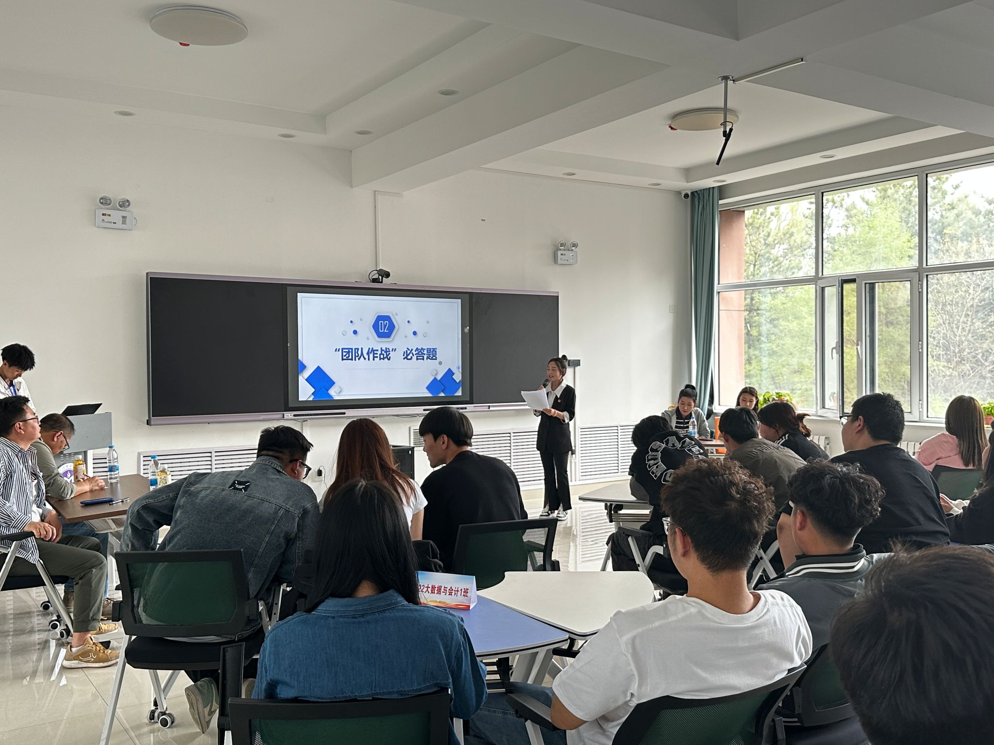 为切实贯彻教书育人、管理育人、服务育人的教育理念,进一步夯实专业基础知识,营造良好的校园文化氛围,增强学生的自我学习、自我提升意识,丰富大学生课外文化生活,加强我院的文化建设内涵,经济管理学院学工办以“‘经’益求精,行稳致远”为主题,于4月25日下午在创业楼二楼活动室举办学院第一届专业基础知识竞赛。全院非毕业班共组成16个队伍参赛,参赛选手共计48人。经济管理学院专任教师苏都、阿古达木,辅导员边雨桐、曹国利到场观赛。
