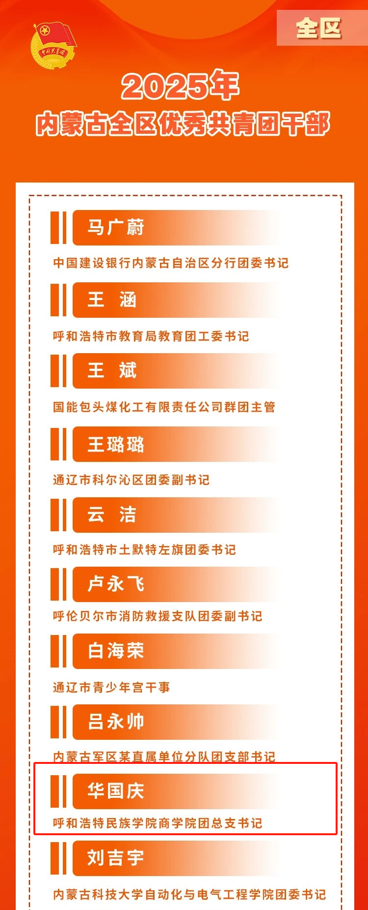 喜报|我院华国庆荣获内蒙古自治区优秀共青团干部荣誉称号
