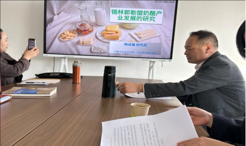 2023年10月19日下午经济管理学院邀请内蒙古社会科学院社会学研究所研究员、农业农村研究中心主任韩成福研究员作了《锡林郭勒盟奶酪产业发展的研究》为主题的学术报告,经济管理学院全体老师和2021级和2022级税收学、金融学、财务管理、市场营销、数字经济的学生代表参加。学术报告以乳制品为切入点,分析锡林郭勒盟奶酪产业发展的环境、奶酪产业发展现状和奶酪产业发展中的突出问题,然后提出锡林郭勒盟奶酪产业发展的对策和建议。随后对自治区畜牧业产业的相关领域以及国务院推动内蒙古高质量发展奋力书写中国式现代化新篇章的意见进行了解读。