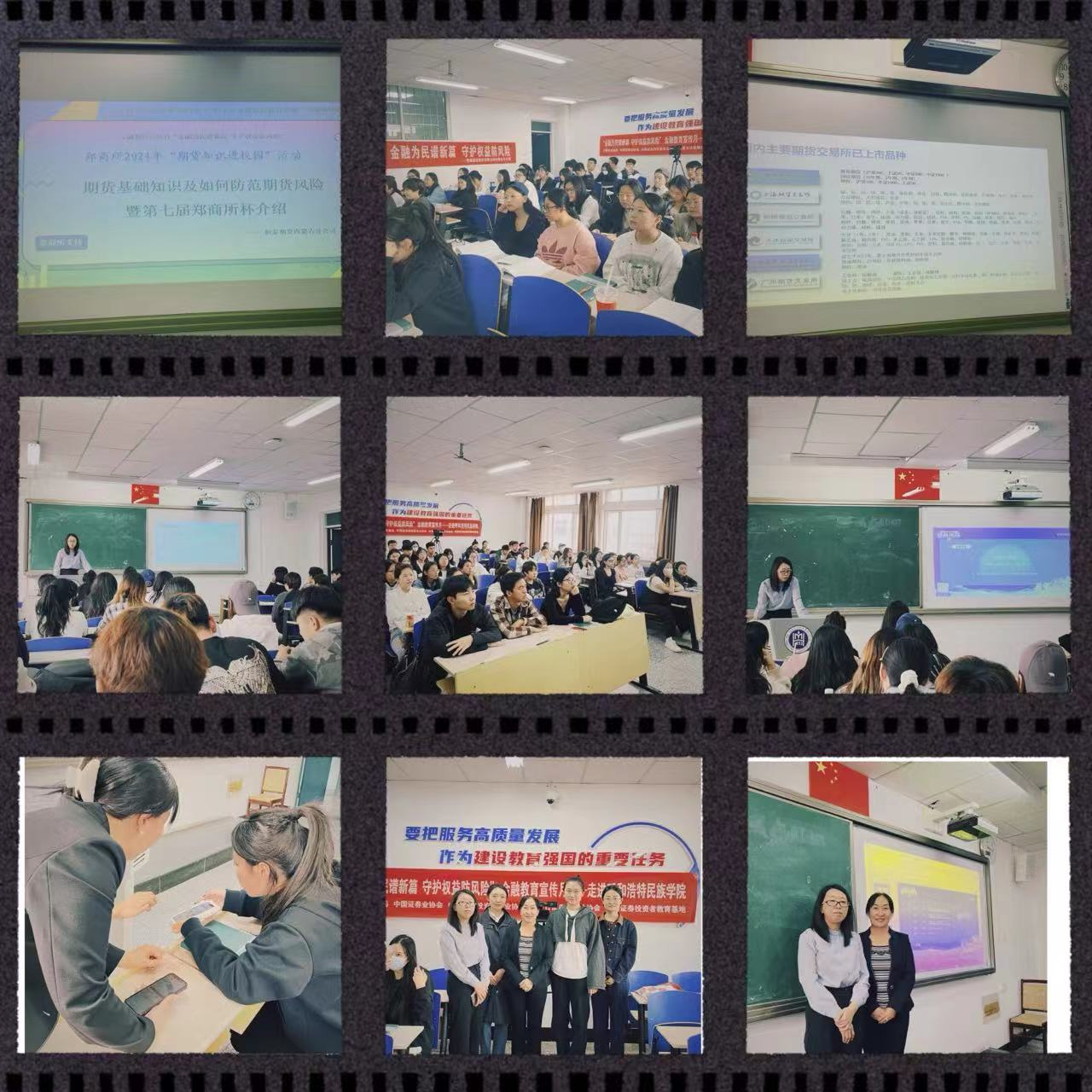 讲座主要内容有两大部分组成,一、期货基础知识及如何防范期货风险,包括期货基础知识简介;非法证券期货诈骗案例;交易者适当性制度等内容。二、“郑商所杯”全国大学生金融模拟交易大赛,包括郑州商品交易所简介;组织模式;大赛背景;赛事内容;理论学习;大赛规则;奖项设置;参赛咨询;学习专区等。