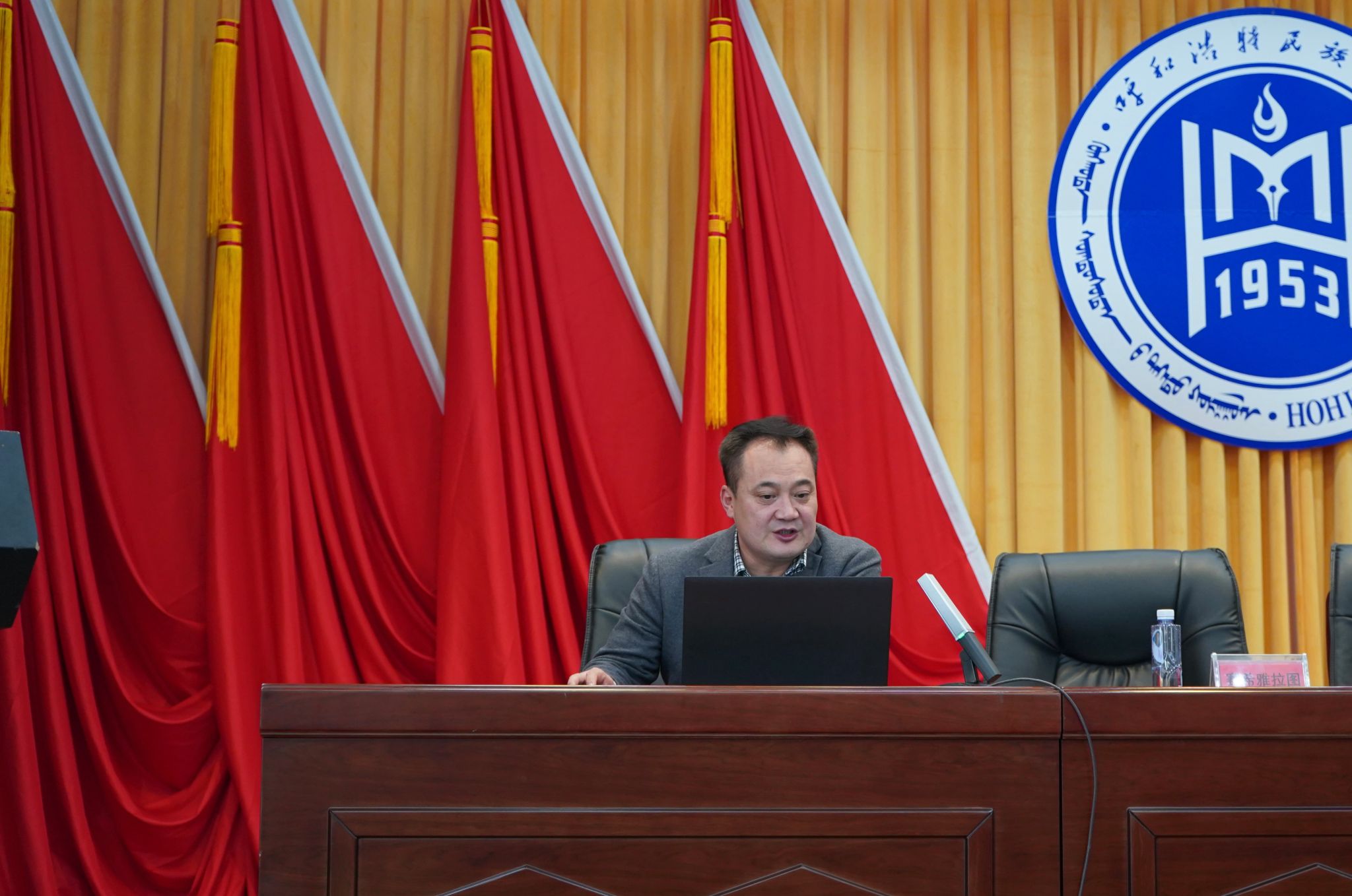 其次、商学院副院长赛希雅拉图针对2025届毕业生的实习工作进行了详细的部署与安排。他首先概述了各专业毕业生的基本情况,随后详细介绍了学院为此次实习筹备的企业岗位及相关具体安排。他还提倡并鼓励同学们踊跃参与由学院统一组织的集中实习活动,希望通过这种方式帮助大家更好地将理论知识应用于实践当中,为未来的职业生涯打下坚实的基础。
