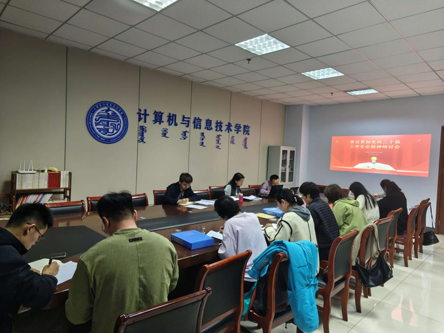 2024年10月31日下午,计算机与信息技术学院开展交流研讨会,会上全体教职工党员、教研室主任、党政管理干部围绕深入学习贯彻党的二十届三中全会精神,进行研讨交流。