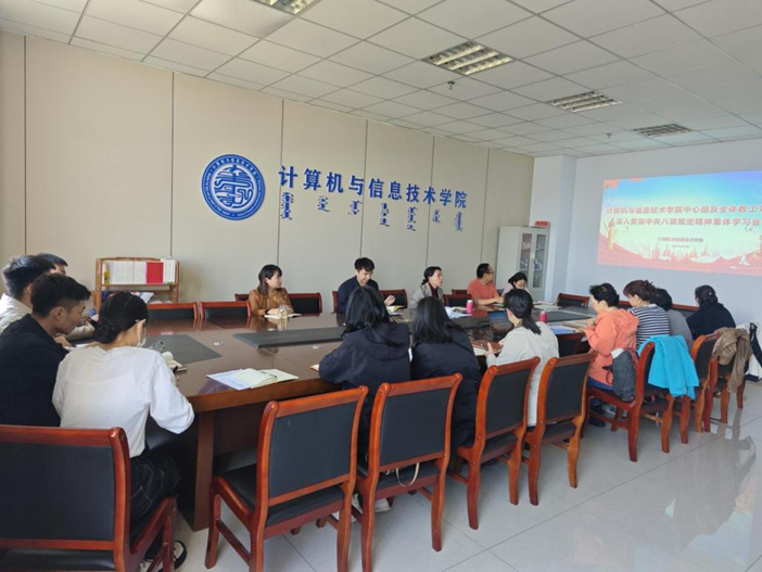 2025 年 4 月 30 日,计算机与信息技术学院在综合楼 1008 召开深入贯彻中央八项规定精神集体学习会。学院理论中心组及全体教工党员参会。