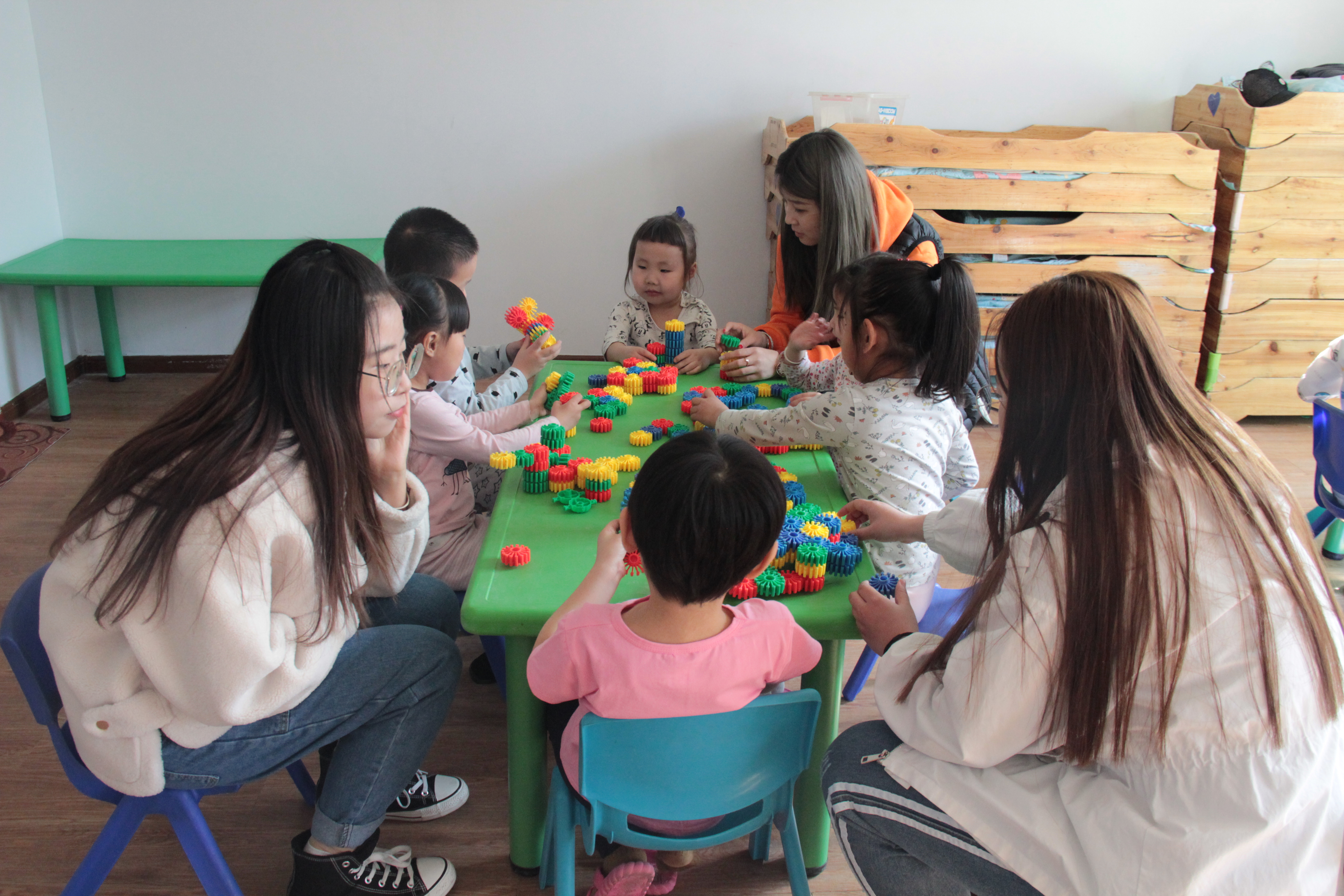同学们与小朋友们游戏互动