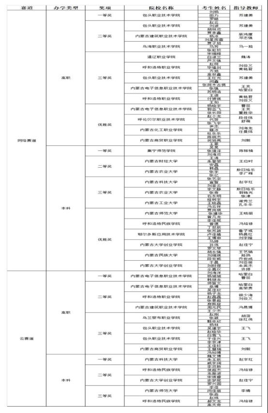 华为中国大学生ICT大赛2021实践赛内蒙古省赛决赛获奖名单