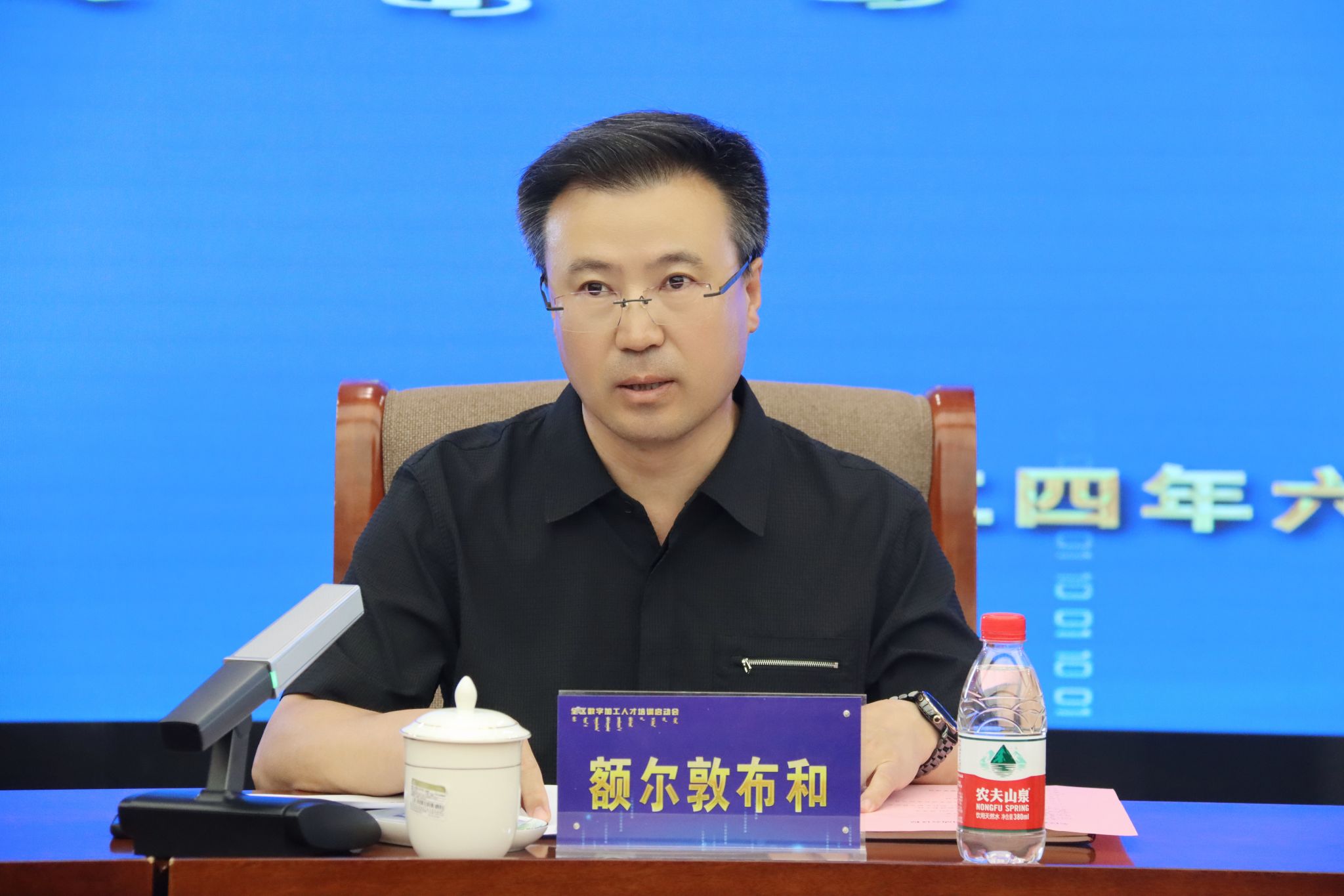 启动会议上,额尔敦布和代表学校致欢迎辞。他对各位领导的莅临指导表示欢迎,他表示,本次人才培训为完成好习近平总书记交给内蒙古的五大任务、全方位建设“模范自治区”这两件大事提供有力的人才支撑。学校继续与自治区政务服务与数据管理局局、呼和浩特市新城区政府、浪潮集团内蒙古公司等社会各界和企业加强合作,共同打造全区大数据人才实训基地。