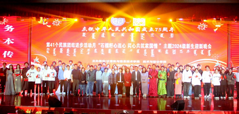 金秋送爽,丹桂飘香。为热烈庆祝中华人民共和国成立75周年,深入开展学校第41个民族团结进步月活动,9月29日晚,计算机与信息技术学院和美术与设计学院在北院图书馆二楼报告厅联合举办了“石榴籽心连心 同心共筑家国情”为主题的2024级新生迎新晚会。