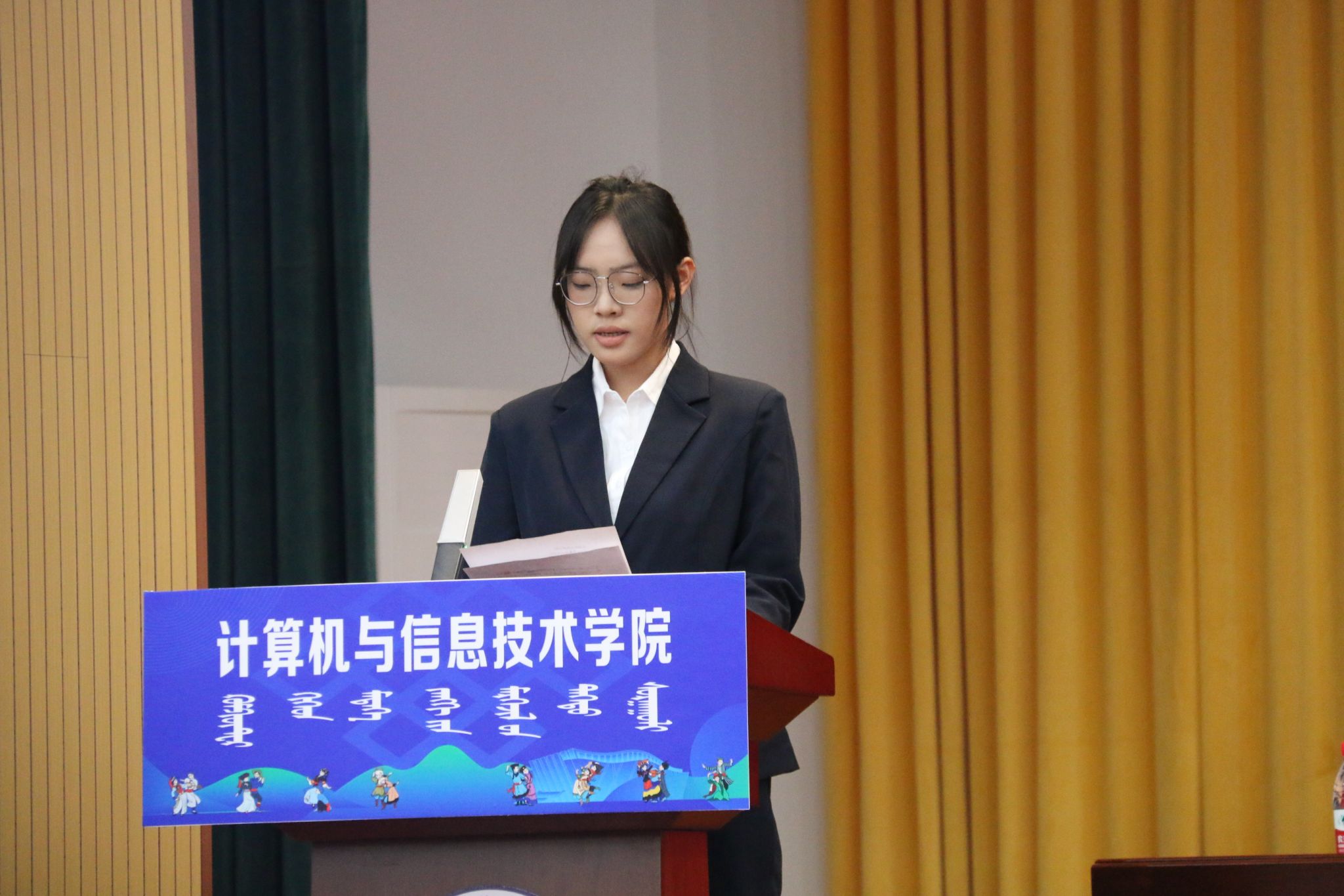 2023级数据科学与大数据技术班庞丽君作为在校生代表发言。