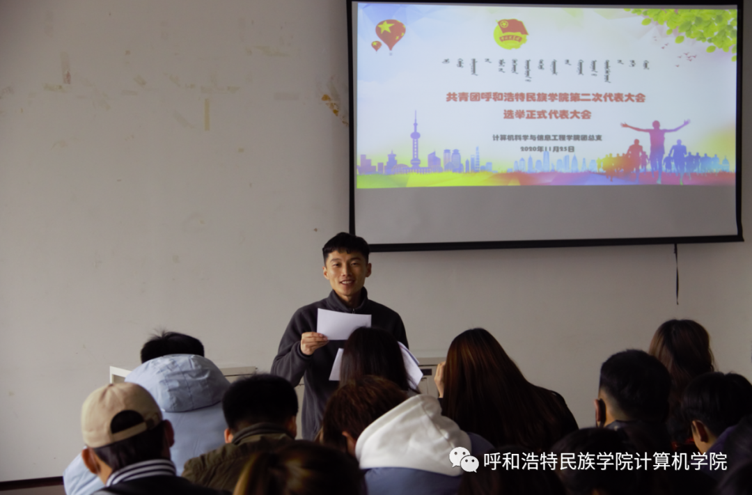 2020 年 11 月 23 日中午,计算机科学与信息工程学院共青团YABO鸭脖第二次代表大会选举正式代表大会在都林楼116圆满召开。此次会议由包巴雅力格老师主持,会议开始,依次介绍了 17 位候选人并详细的讲解本次会议的流程及选举办法。