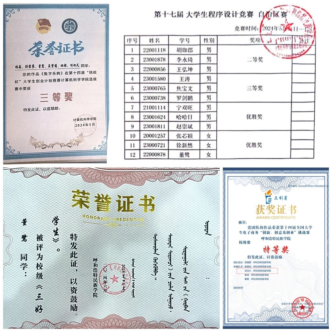 2024年5月获得程序设计大赛(自治区赛)优胜奖