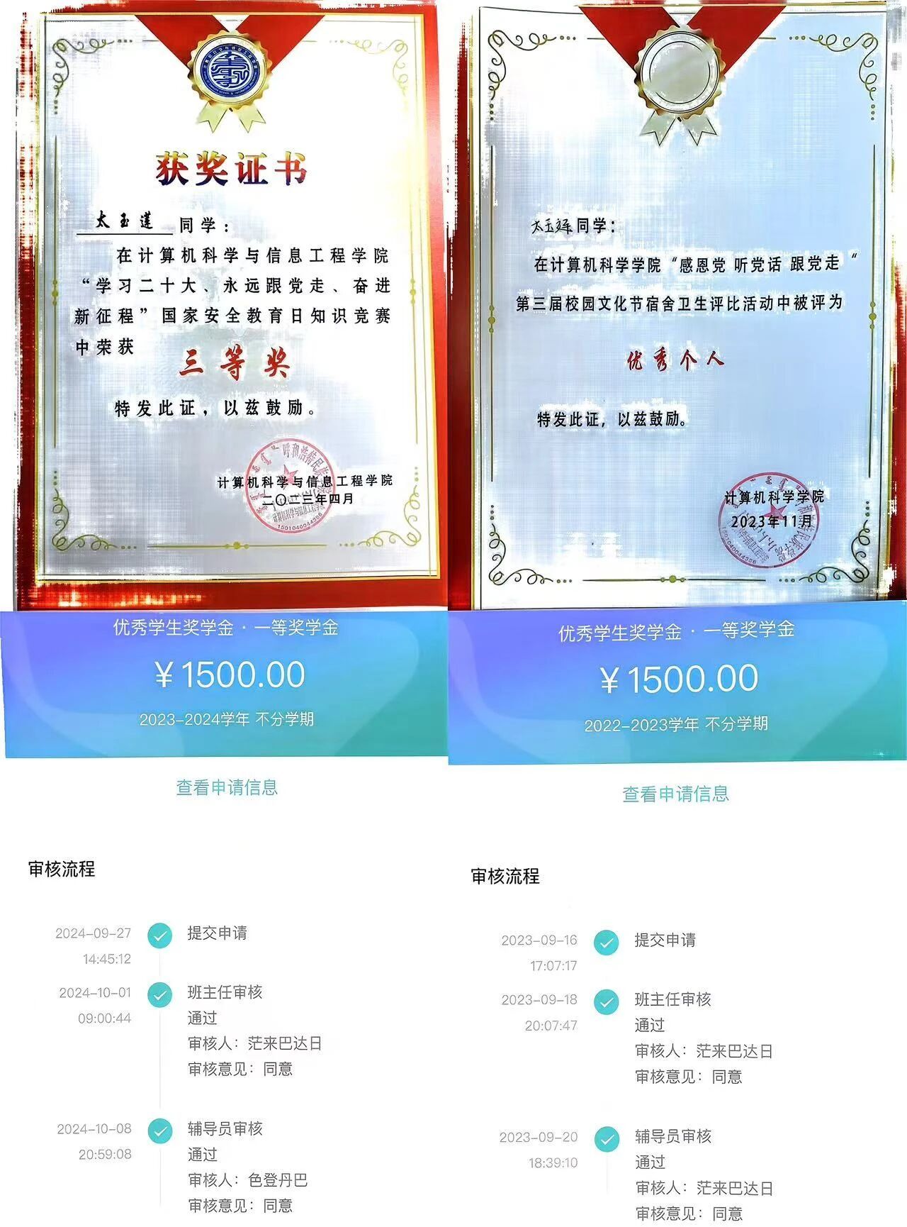 2023年10月获得自治区奖学金