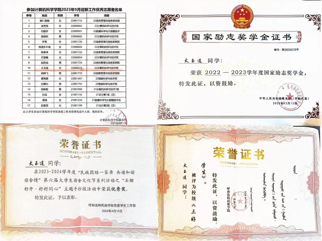 2024年10月获得乌兰夫奖学金