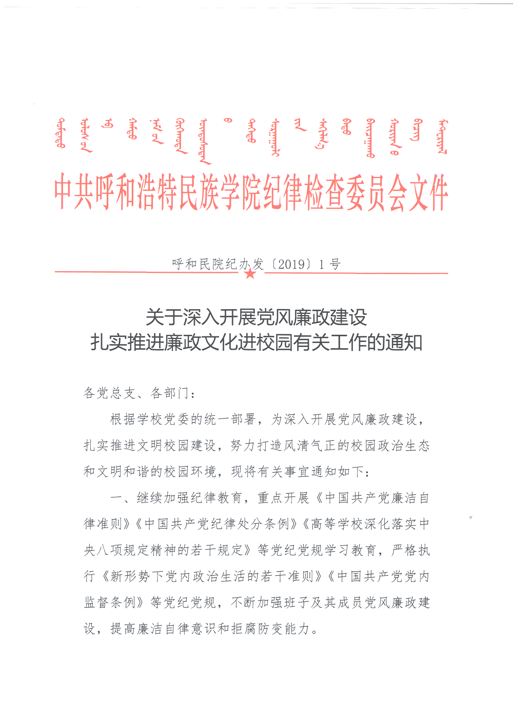 关于深入开展党风廉政建设扎实推进廉政文化进校园有关工作的通知