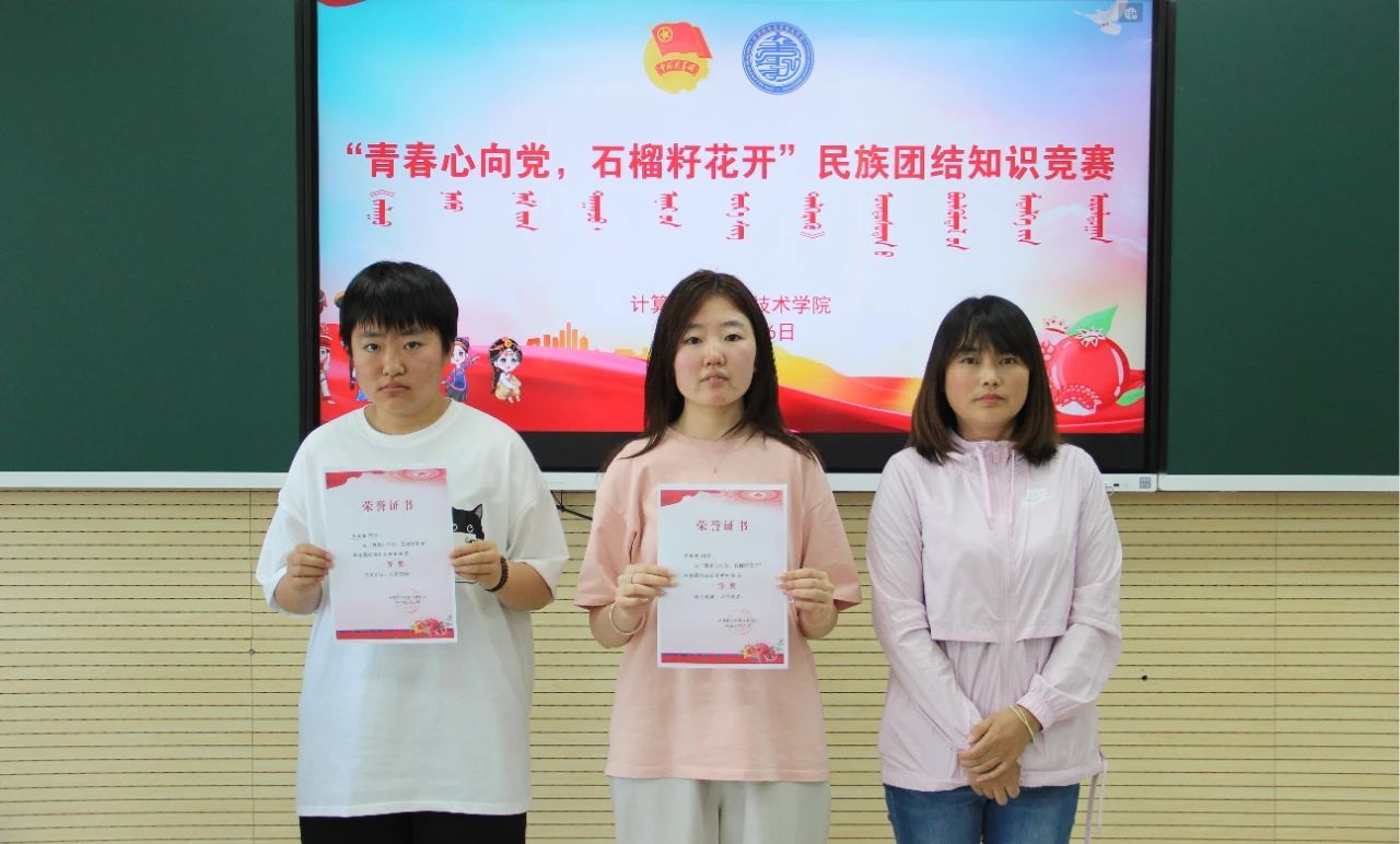 5月27日中午,党总支副书记李云、团总支书记包巴雅力格、学工办副主任云麒为获奖学生颁奖。