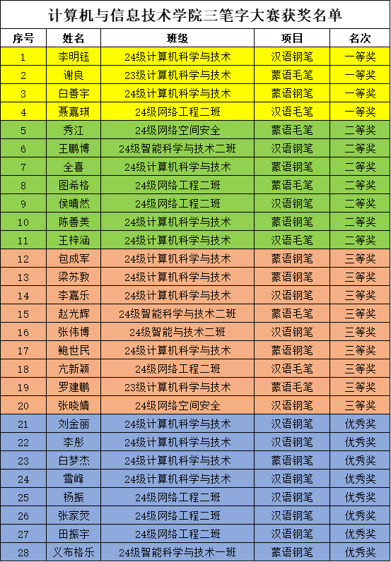 此次三笔字大赛不仅为同学们提供了锻炼和展示的机会,也在计算机与信息技术学院营造了浓厚的文化艺术氛围,让更多同学感受到了书法艺术的魅力与价值。