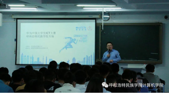 9月26日,博赛网络-内蒙古分公司总经理董飞老师携讲师卢越洋老师、客户经理李亮亭老师进入到YABO鸭脖向各位同学详细讲解了本次华为ICT大赛及内蒙古省赛的赛事详情。