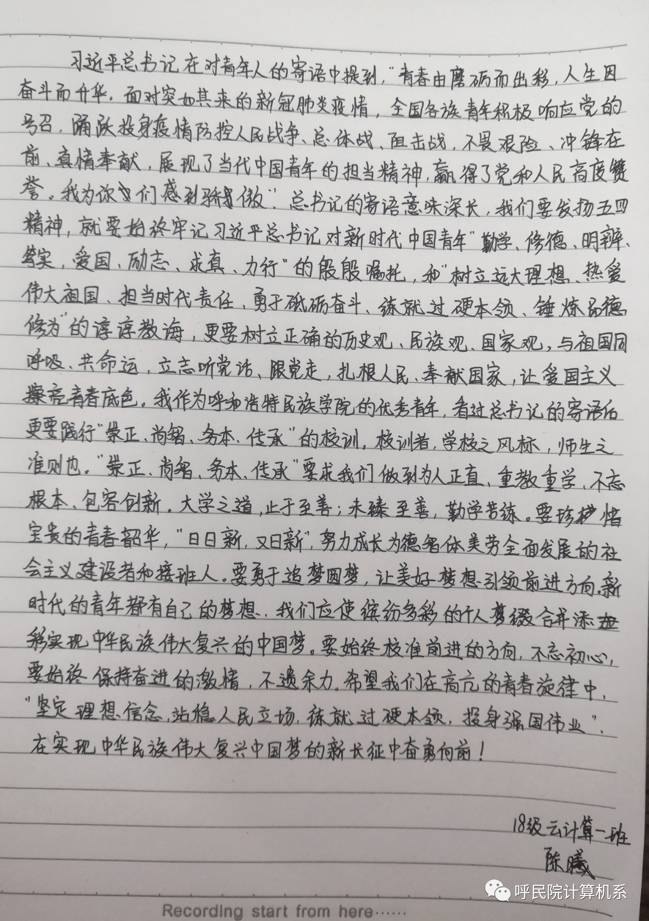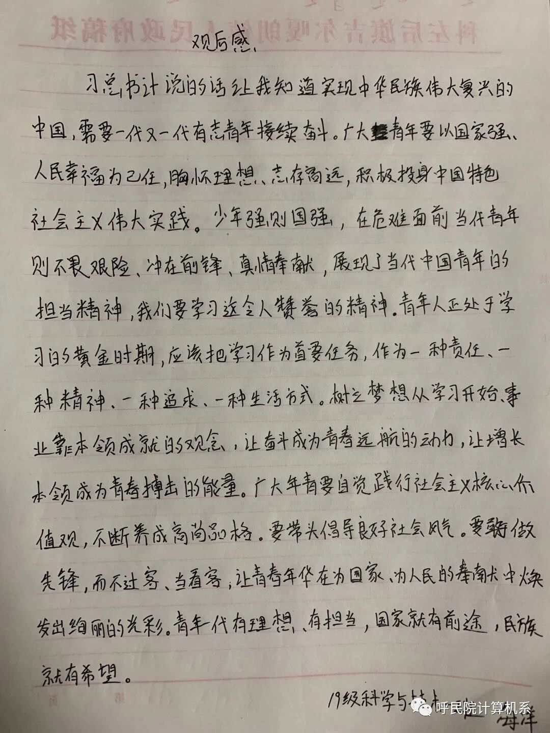 计算机学院各团支部认真领悟“习近平总书记给青年送出的寄语”,并认真写好心得体会。我们在此次学习中深刻体会到,新时代中国青年要继承和发扬五四精神,同亿万人民一起在实现中华民族伟大复兴中国梦的新长征路上奋勇搏击!