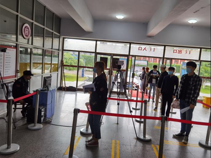 考生入场时,严格按照学校疫情防控规章制度有序排队,保持规定间距,体温监测,依次进入考场。