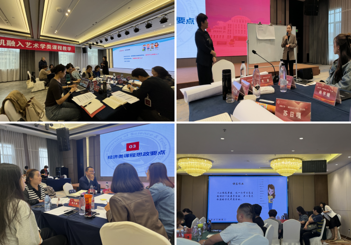 讲座后,会场分成四个教学工坊,现场交流了课堂教学设计和课堂实践经验。鸭脖教师按照学科分组积极分享自己的教学设计,参与了课程思政设计的经验交流。
