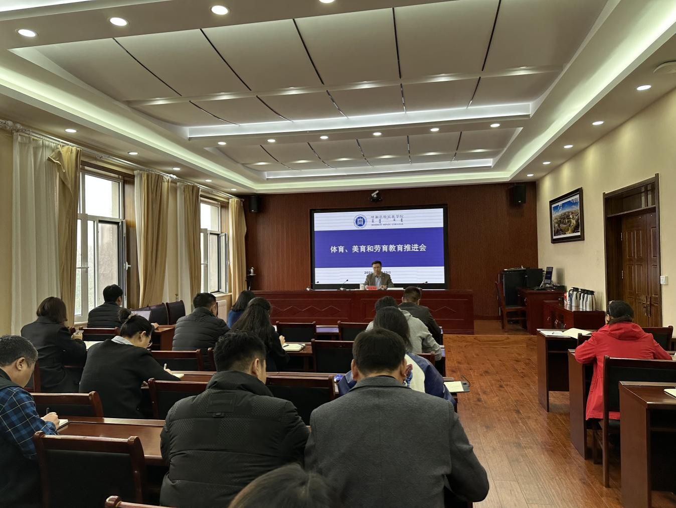 11月19日,学校在办公楼四楼会议室召开新时代体育、美育、劳育工作推进会,校党委委员、副校长额尔敦布和主持会议并讲话。