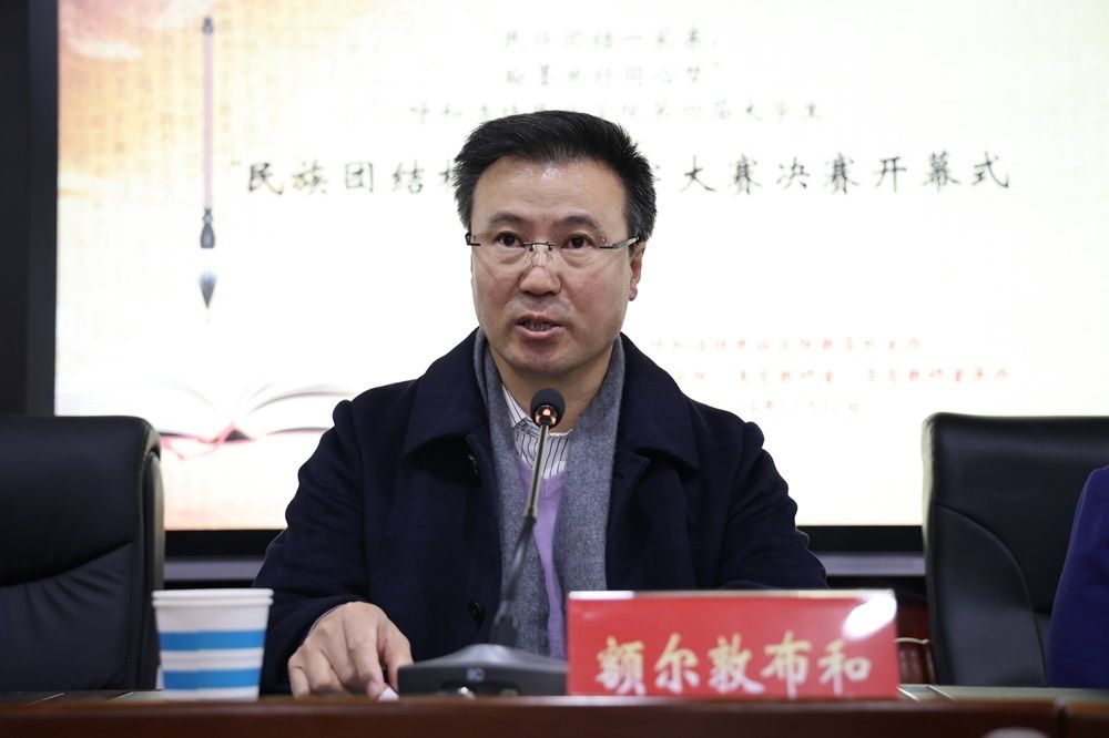 12月12日,鸭脖“民族团结一家亲,翰墨共抒同心梦”第四届大学生“民族团结杯”三笔字大赛(决赛)落下帷幕。本次比赛由学校教务处主办,美术与设计学院、美育教研室、劳育教研室承办,特邀内蒙古大学出版社原副总编辑、中国书法家协会会员、西泠印社社员朝洛蒙老师,内蒙古艺术学院民族艺术研究所所长、博士乌苏荣贵教授和美术与设计学院4位专家担任评委,校党委委员、纪委书记、监察专员王冬梅,党委委员、副校长额尔敦布和出席活动并讲话。